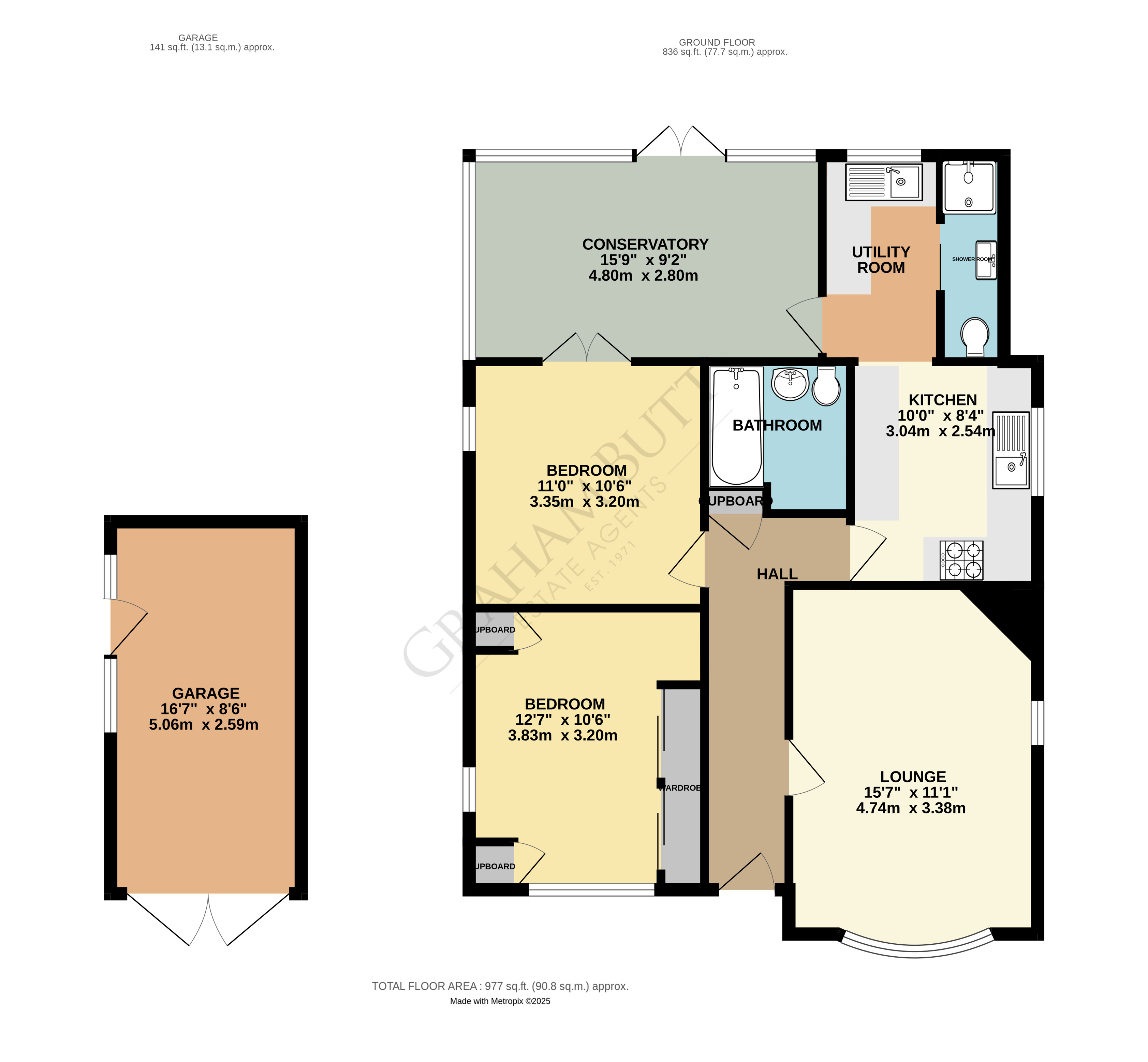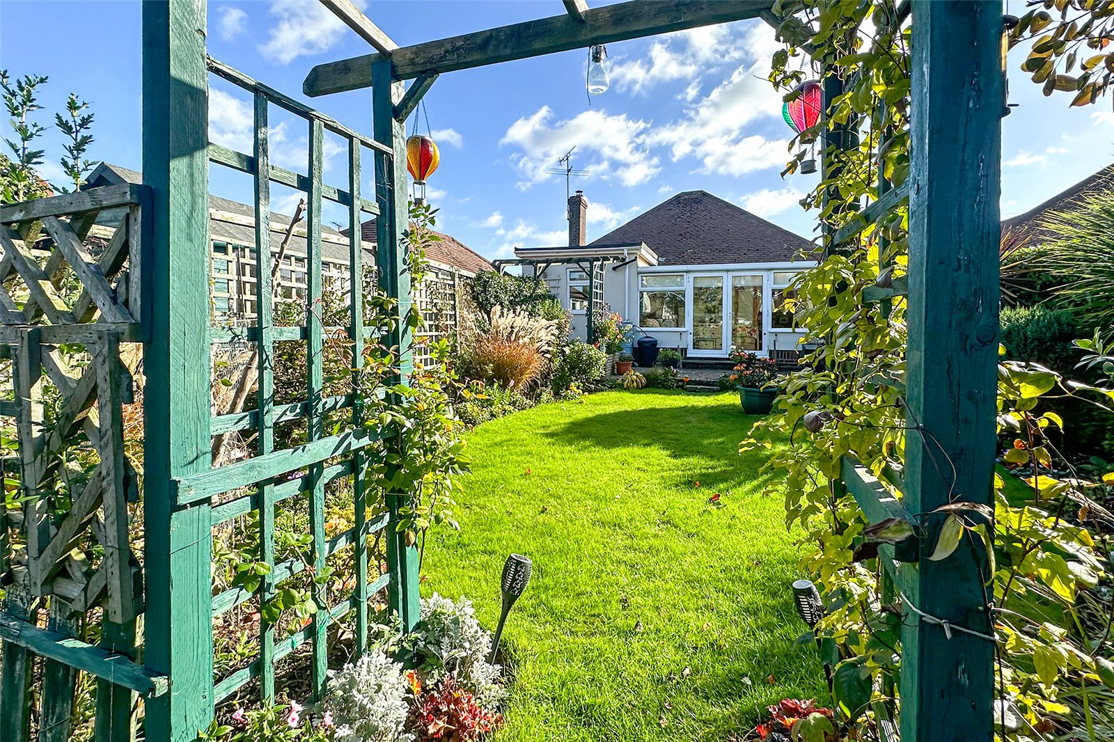 Step into a spacious and welcoming hallway that provides access to all the main rooms of the home. At the front, the lounge is full of charm and characteran ideal space for relaxing or entertaining. The front bedroom is generously sized and features built-in wardrobes, while the rear bedroom can easily be used as a dining room, with direct access to the conservatory.