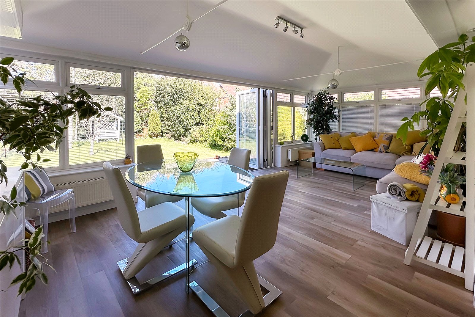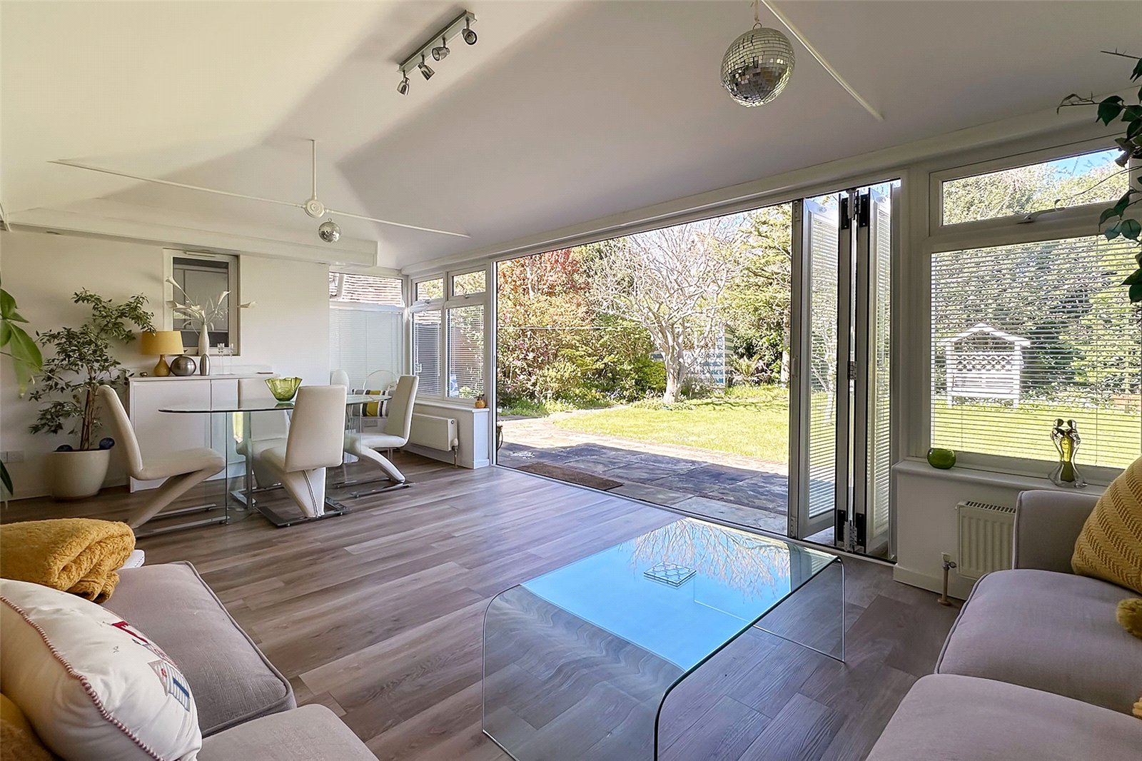 A stylish, chain-free chalet bungalow offering space, flexibility, and effortless modern living.Set behind a generous frontage with ample parking and a detached garage, the home opens into a layout designed to adapt around you. At its heart, a spacious kitchen/dining area flows into a bright sun room, creating a natural hub for everyday living and entertaining.Versatile reception rooms give you options additional bedrooms, home office, or relaxed living space while an ensuite and main bathroom keep things practical.Upstairs, a private principal bedroom enjoys access to a sun terrace, adding a touch of lifestyle rarely found.Flexible, well-balanced, and ready to move straight into all with no onward chain.