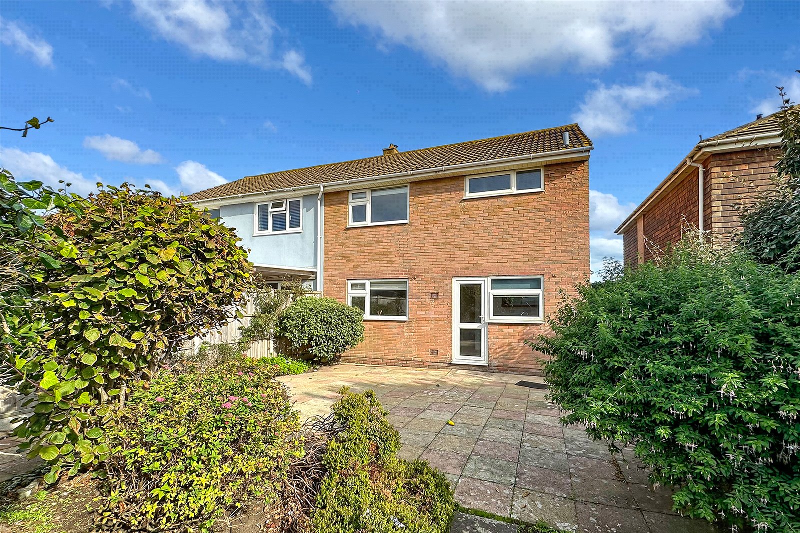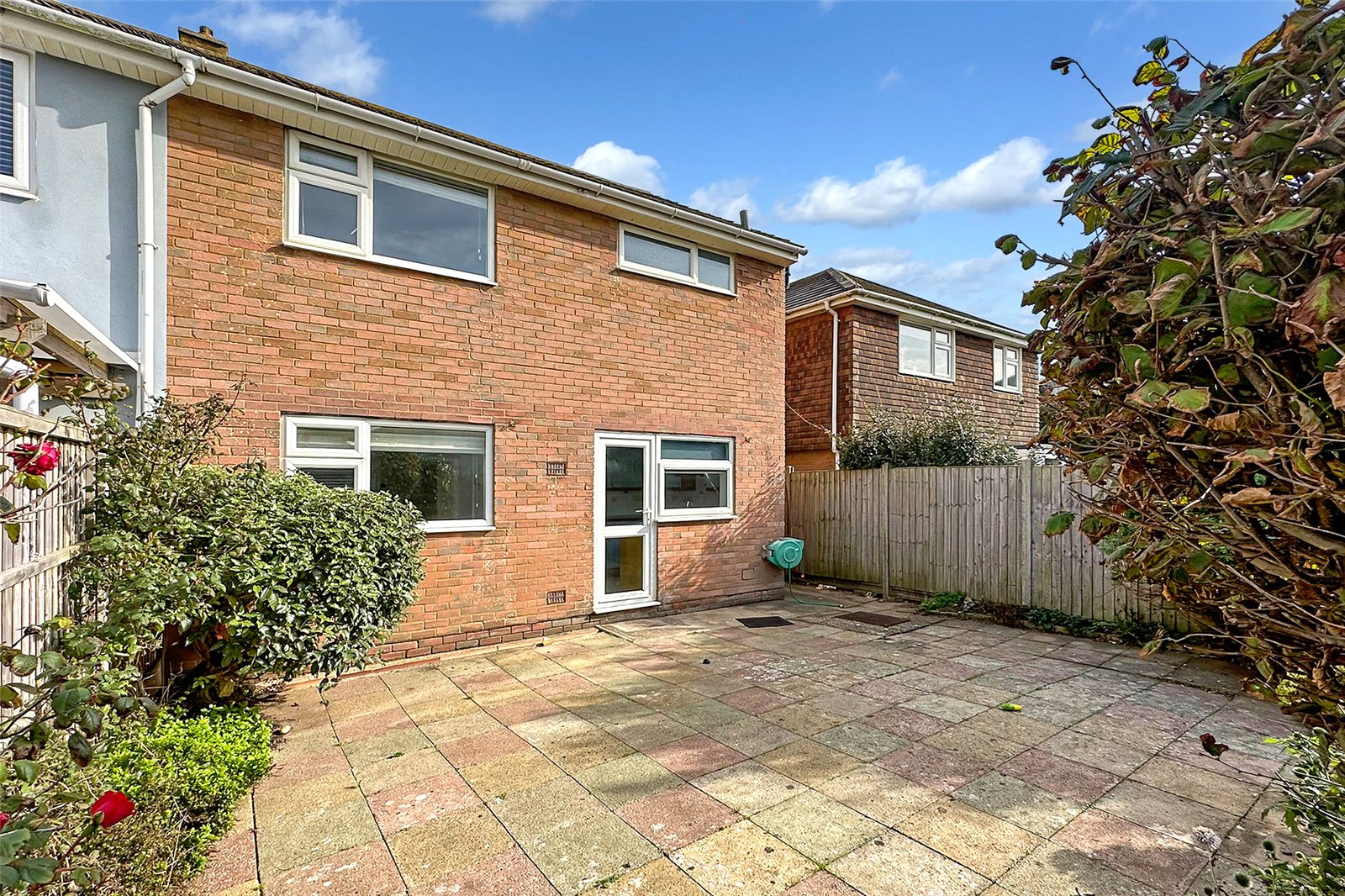 To the rear, the west-facing garden is a lovely suntrap ideal for evening relaxation and includes side access alongside the garage. This practical feature is perfect not only for vehicles but also for storing beach gear, bicycles, or water sports equipment, making coastal living truly effortless.