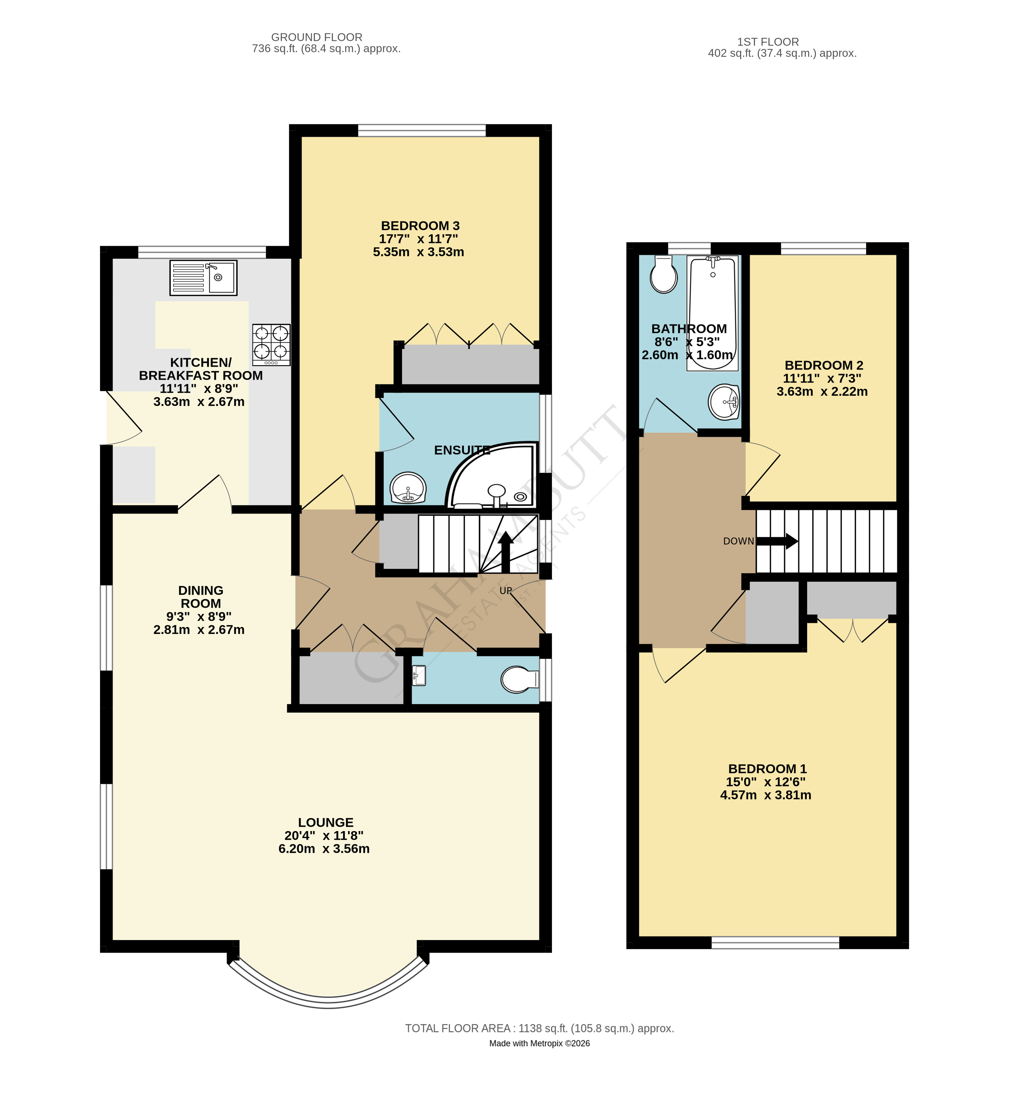 A well-presented three-bedroom detached chalet bungalow, offered chain free, with a garage and driveway.The ground floor provides flexible accommodation, including a spacious 'L' shaped lounge/diner, modern fitted kitchen, and a ground floor bedroom with en-suite shower room, ideal for future proofing. A cloakroom completes the layout.Upstairs, there are two further bedrooms and a family bathroom, offering well-balanced space throughout.Externally, the property benefits from a private rear garden, along with a garage and off-road parking.A fantastic opportunity to acquire a versatile home with no onward chain early viewing advised.