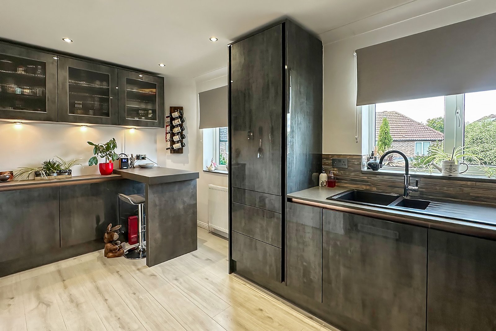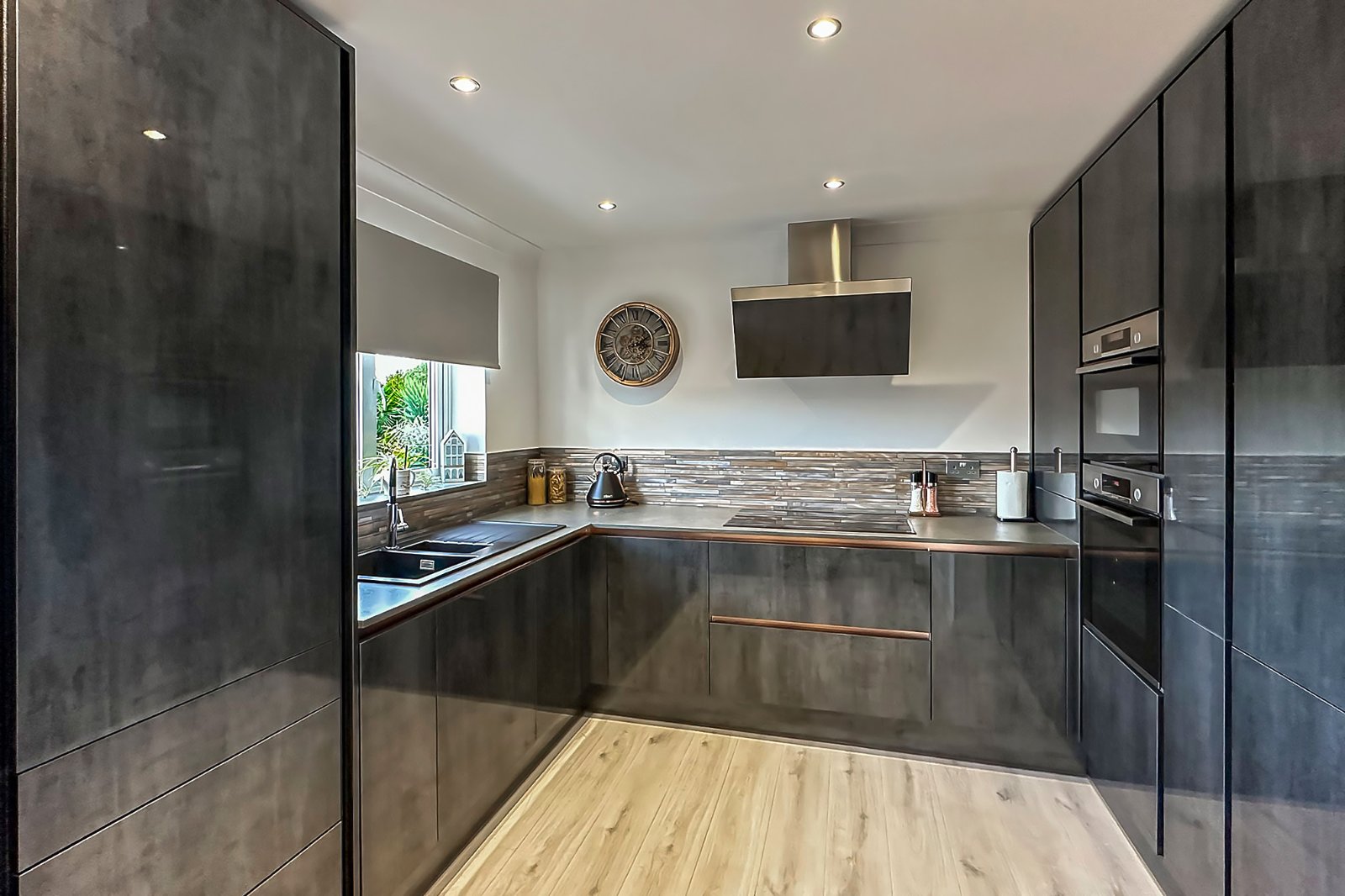 This stylish townhouse, set within the sought-after Parklands Estate, offers spacious accommodation arranged over three well-designed floors. The layout ensures impressive room proportions, with the first floor dedicated to generous living areas. A standout feature is the lounge/diner, which boasts a striking floor-to-ceiling bay window that floods the space with natural light. The adjacent kitchen showcases classic shaker-style units and includes room for a breakfast table, making it both functional and inviting.