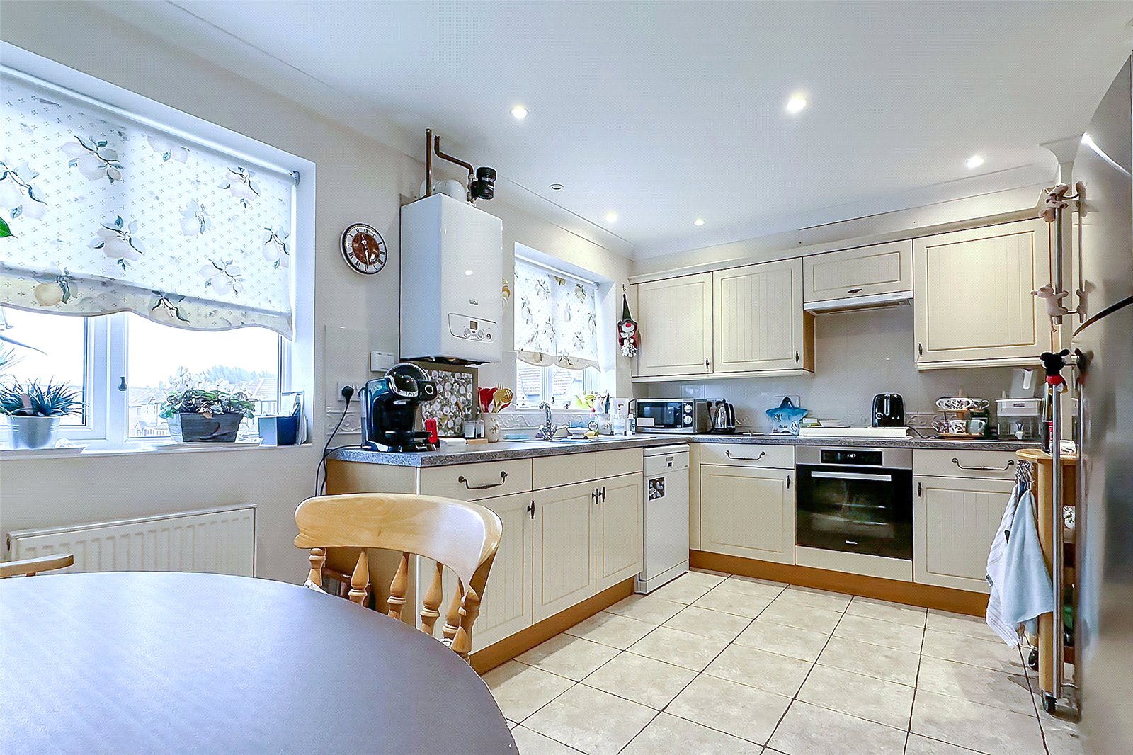 First Floor - The expansive lounge/diner serves as the vibrant hub of the homeperfect for entertaining or relaxing. Adjacent is a kitchen featuring classic shaker-style cabinetry and ample space for a breakfast table.