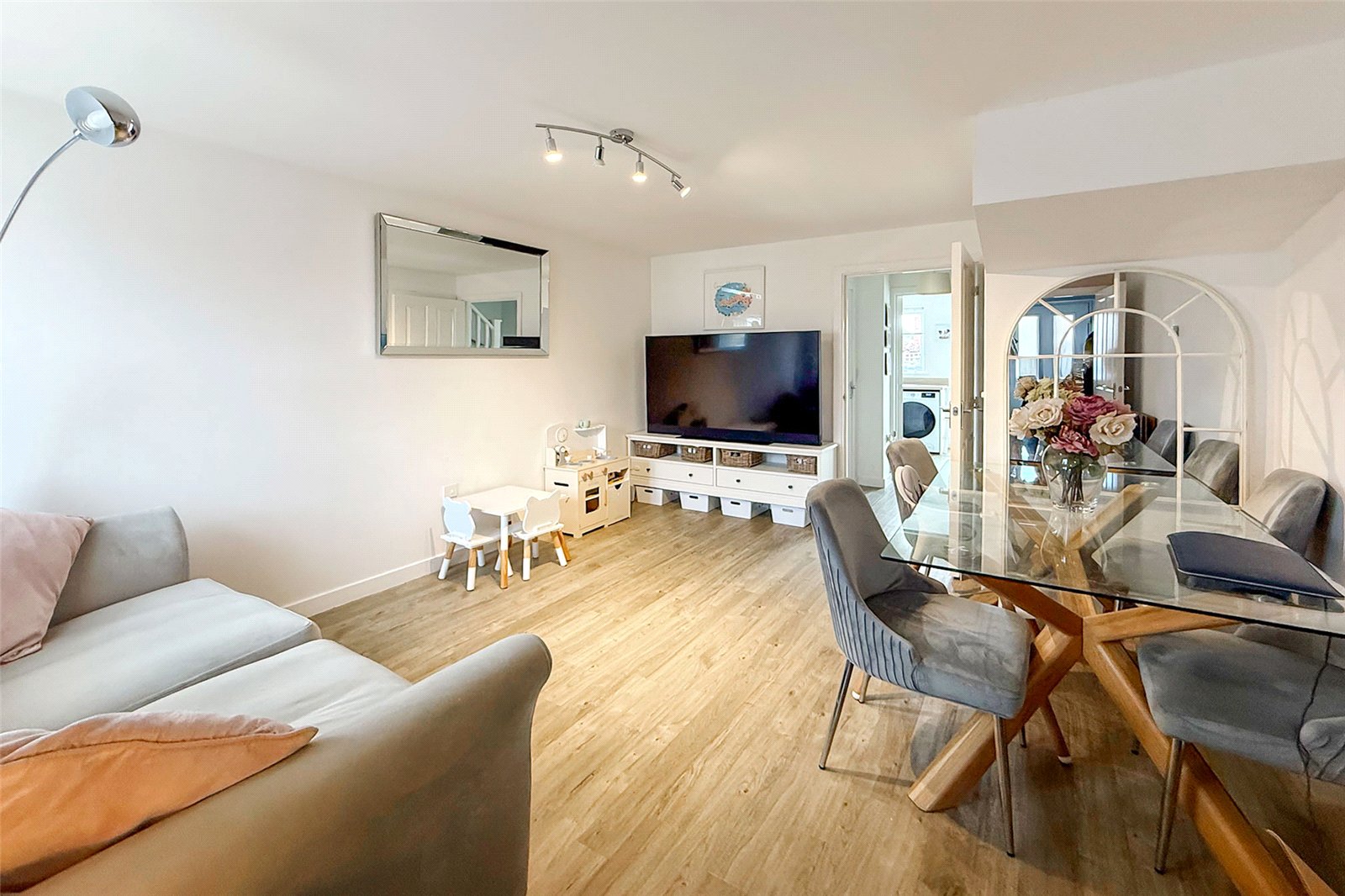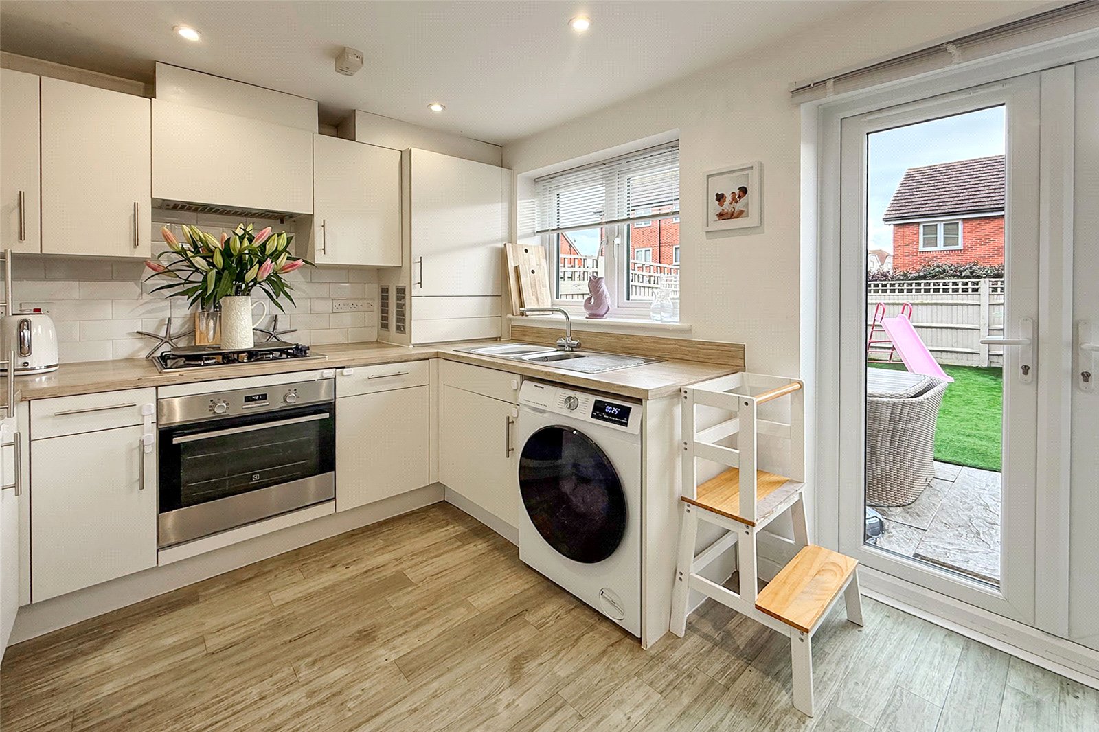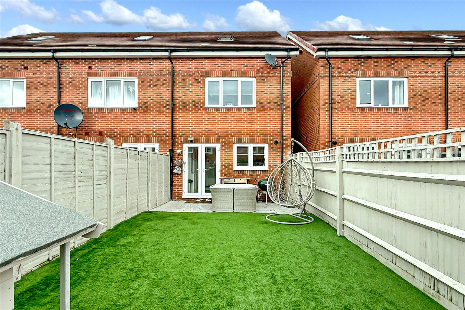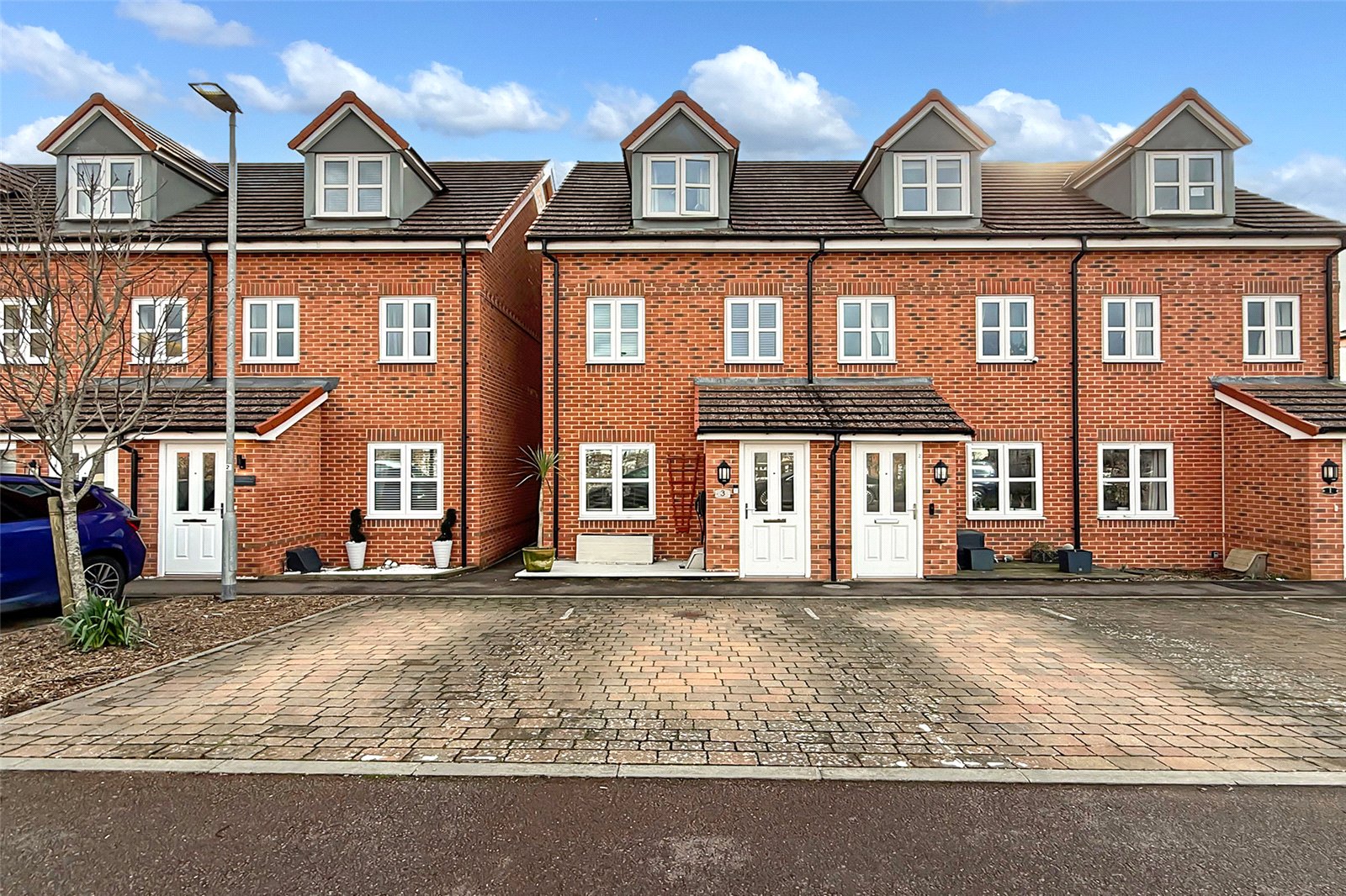 Built in 2017 this spacious THREE DOUBLE BEDROOM end of terrace town house is offered to the market in extremely good decorative order and offers generous accommodation throughout. This property is available for the very first time since new! Key features include a low maintenance, landscaped SOUTH FACING private rear garden, a modern kitchen/breakfast room with space for a table. The spacious living room features a large understairs cupboard and there is a ground floor cloakroom. On the first floor you will find two good sized double bedrooms and a modern family bathroom. On the top floor is a large main bedroom with an en-suite shower room. The property also benefits from TWO ALLOCATED PARKING SPACES to the front of the house and is double glazed with gas central heating throughout. Viewing is highly recommended!