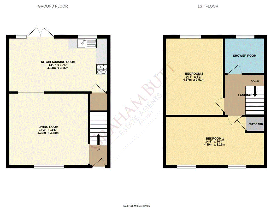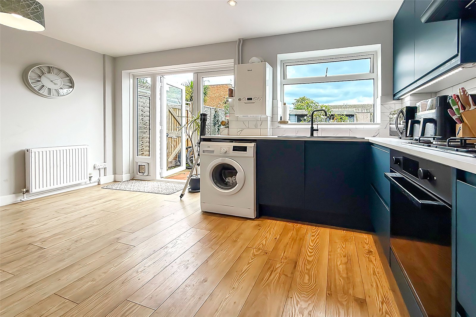 This well presented two bedroom end of terrace house offers comfortable living with a modern finish throughout. Perfect for first time buyers, downsizers, or investors, the property is offered with NO ONWARD CHAIN, allowing for a smooth and speedy purchase. The ground floor features a good sized lounge leading through to the bright and spacious modern kitchen/diner, ideal for everyday living and entertaining. Upstairs, you will find two generously sized double bedrooms and a shower room. Outside to ther rear is the private garden with side access and a garage situated in a compound behind, providing secure parking or additional storage space.