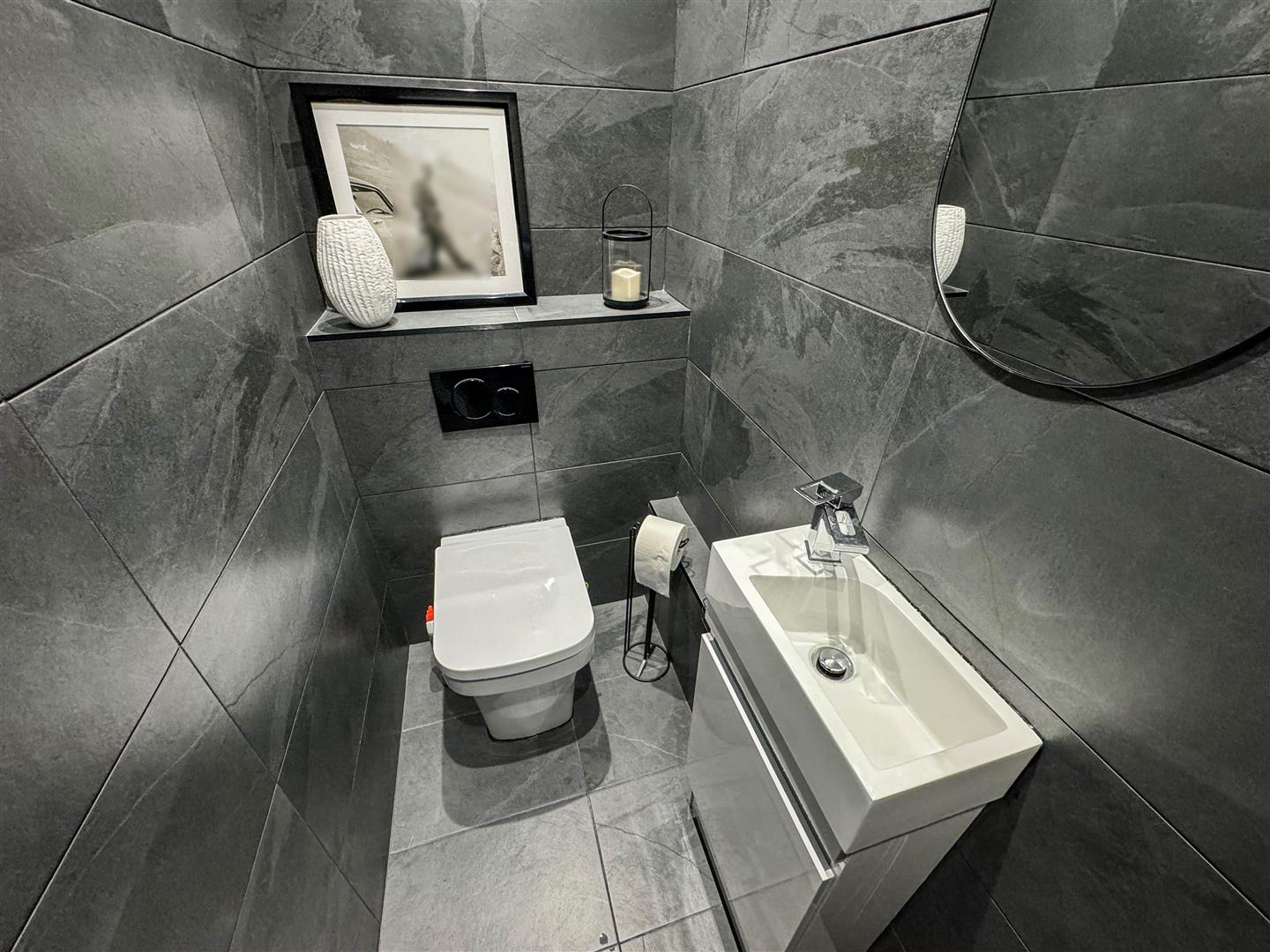 Wc - WC, basin, tiled floor & tiled walls.