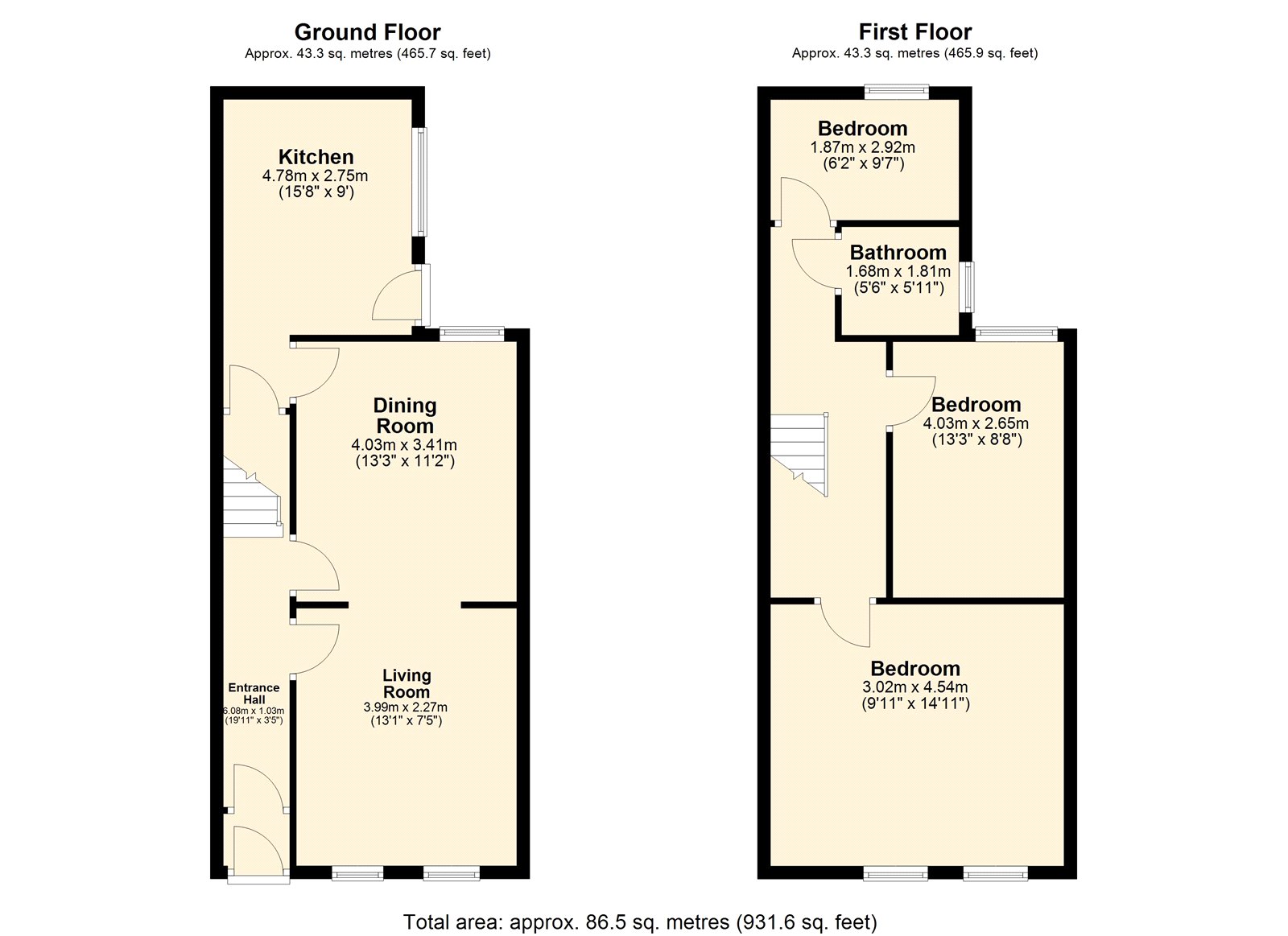The accommodation is arranged over two floors and briefly comprises an entrance hall, two generously sized reception rooms, and a kitchen area to the ground floor. To the first floor are three well-proportioned bedrooms and a family bathroom. Externally, there is a rear yard providing outside space with scope for improvement.