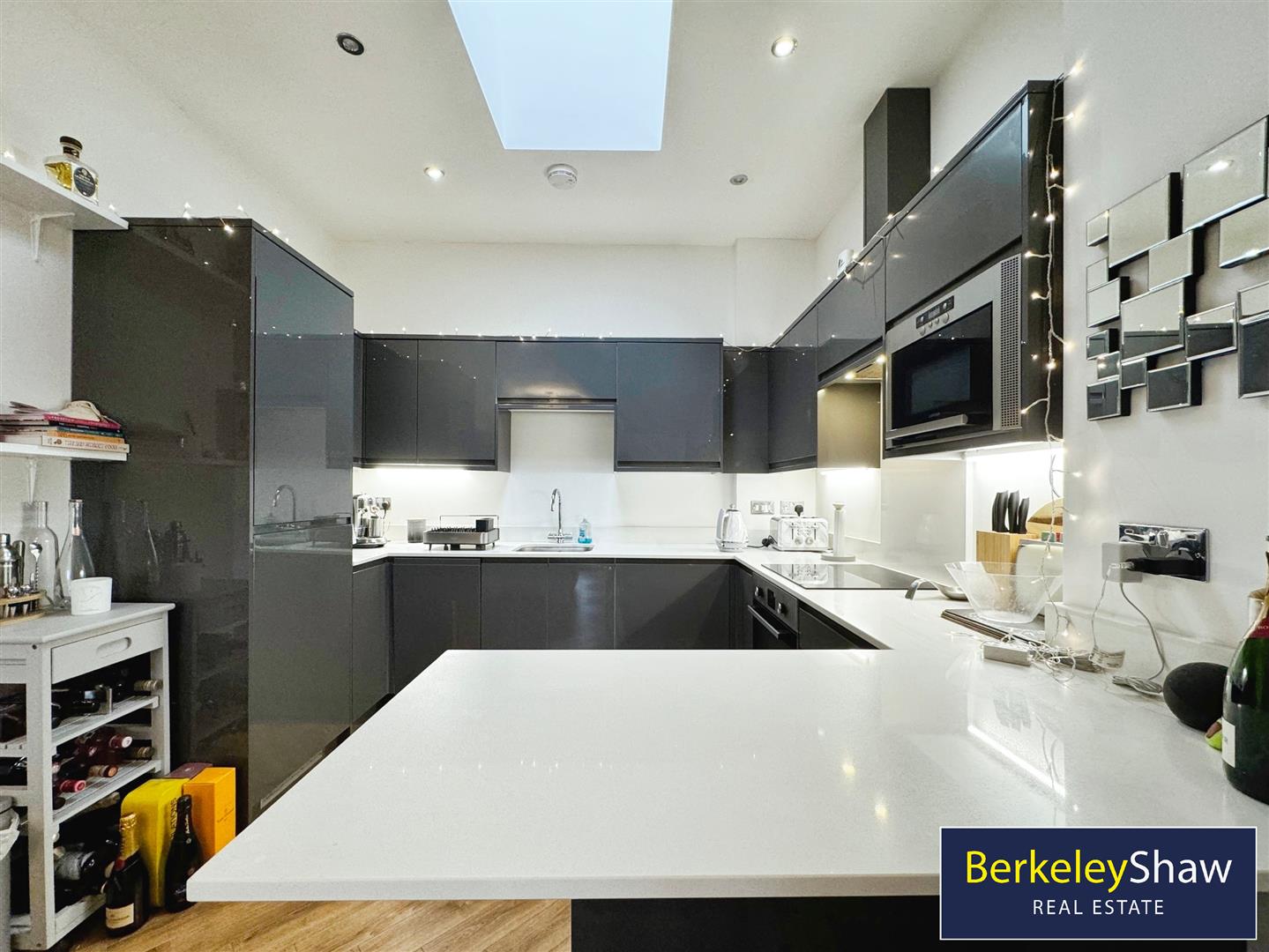 Step inside and be greeted by a bright and welcoming interior, featuring contemporary decor and high-quality finishes throughout. The spacious open-plan kitchen, dining, and living area provides a perfect space for both everyday living and entertaining. The kitchen is a standout, with sleek quartz worktops, a breakfast bar, and a full suite of integrated appliances, offering both style and practicality.