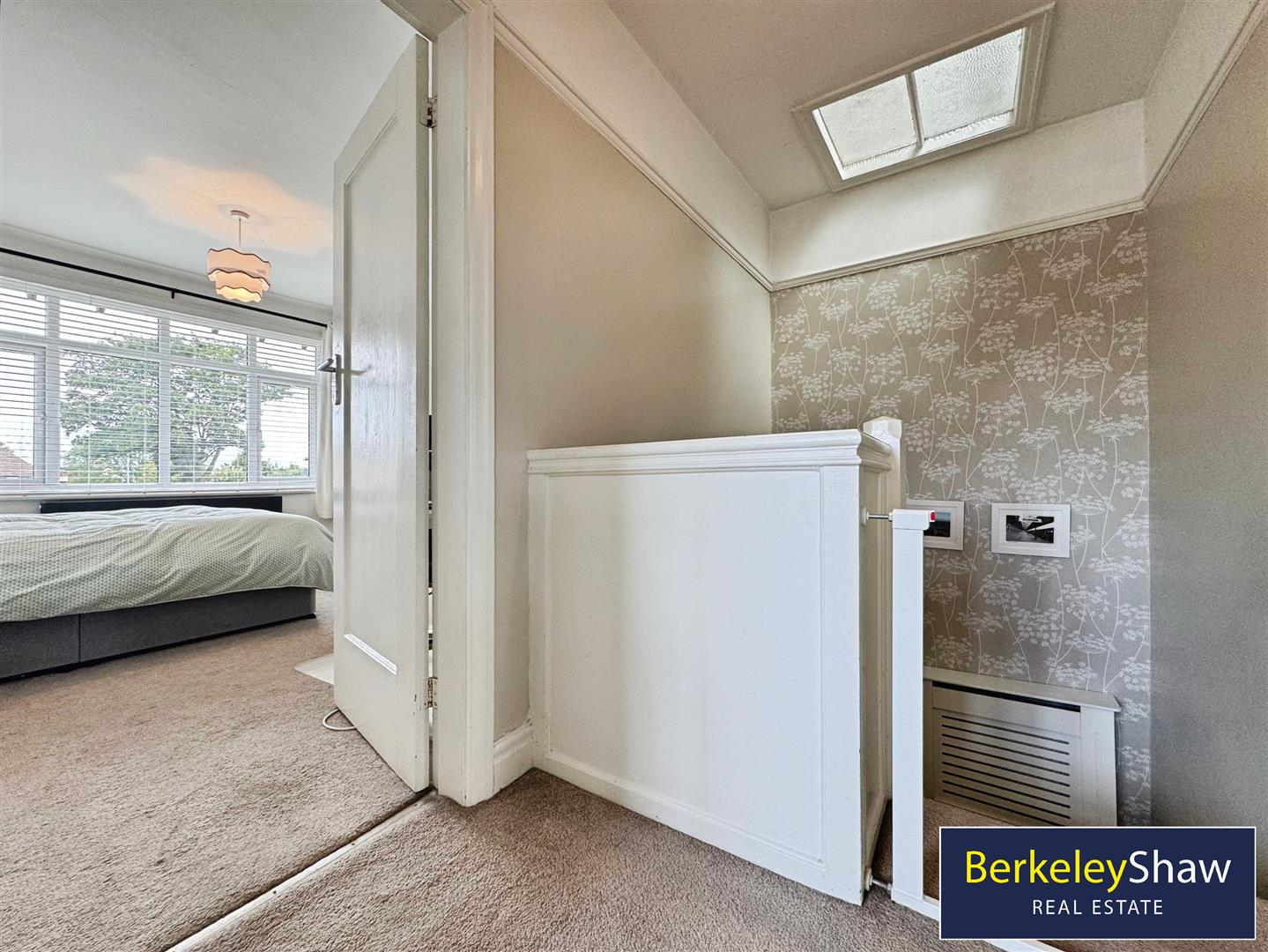 Landing - A turned staircase leads to the upper floor, illuminated by a skylight that fills the space with natural light. Additional features include a radiator and a charming picture rail, adding character and warmth to the landing area.
