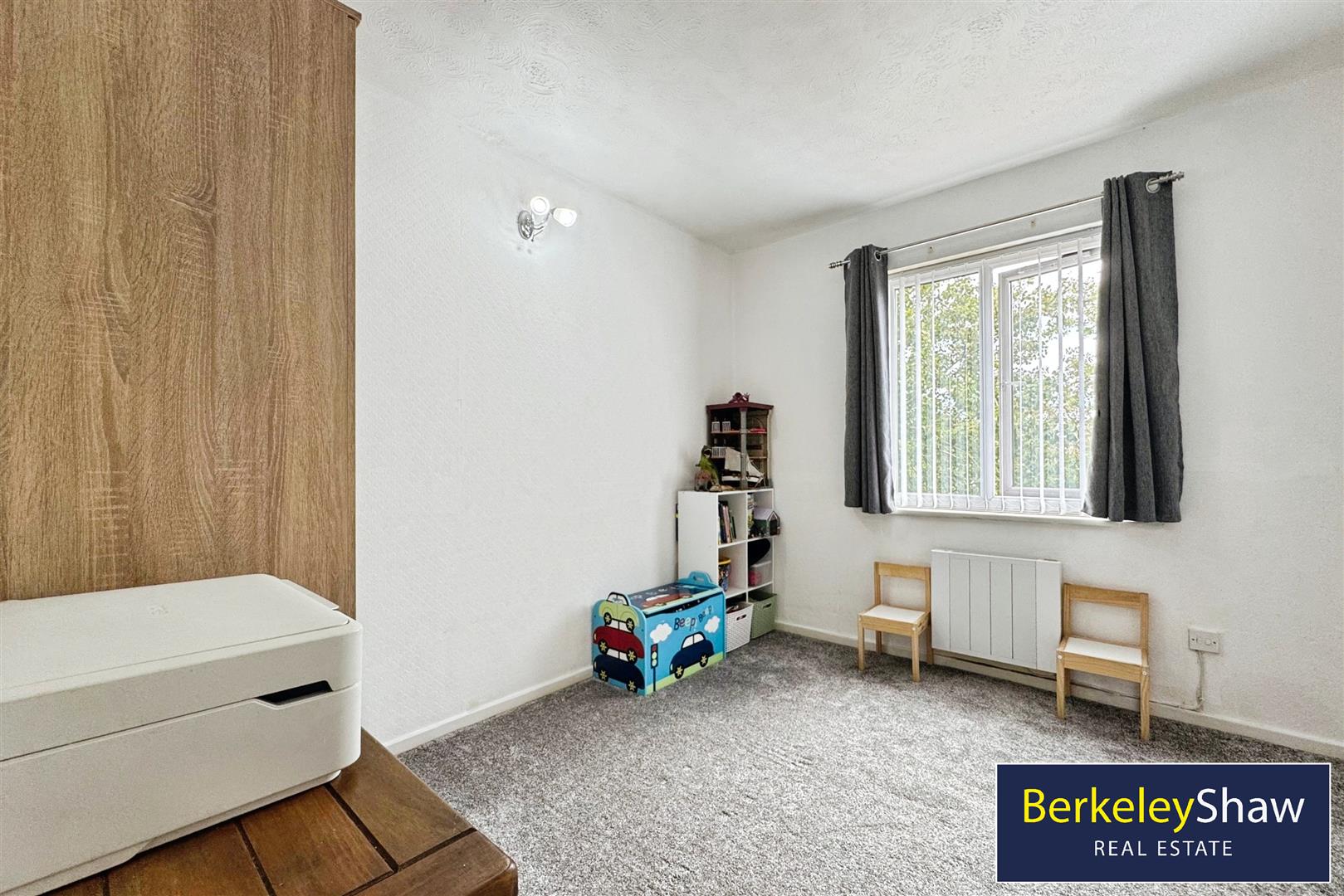 Bedroom 2 - 11'10" x 9'2" - This second bedroom is bright and airy, with neutral decor and carpeting. It offers an ideal space for children, guests, or use as a home office. A window overlooks the outside, ensuring the room benefits from natural light throughout the day.