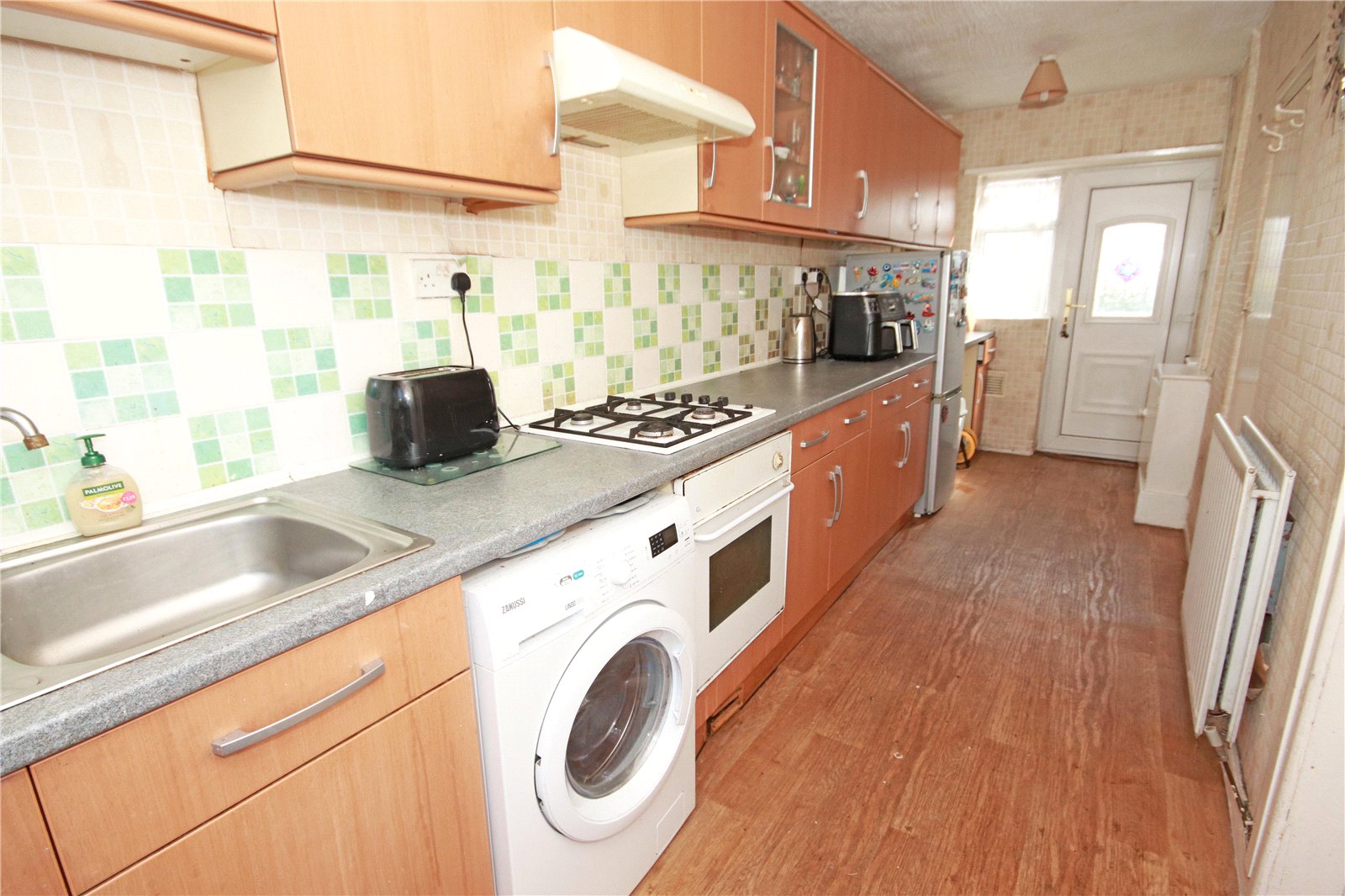 On entering, you are welcomed by a bright entrance hall leading to a comfortable front living room, perfect for relaxing or entertaining. To the rear is a generous lounge/dining room, offering flexible family living space, with direct access through to the galley-style kitchen. The kitchen benefits from two external doorways, one opening to the rear garden and the other providing convenient access to the front drive.