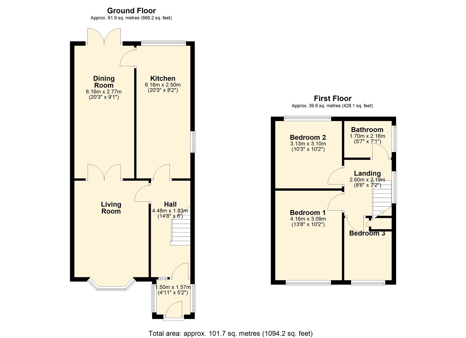 Upstairs are three well-proportioned bedrooms, including a generous master room, along with a fitted bathroom.
