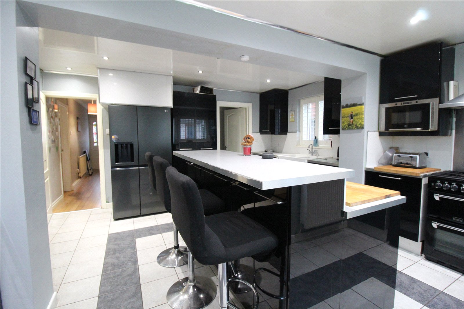 On the ground floor, there is a welcoming entrance hall, leading to a cosy lounge and spacious living room. To the rear of the property is a large kitchen space featuring an island with modern fixtures. Additional benefits include a downstairs loo, patio doors to the garden and a separated dining room.