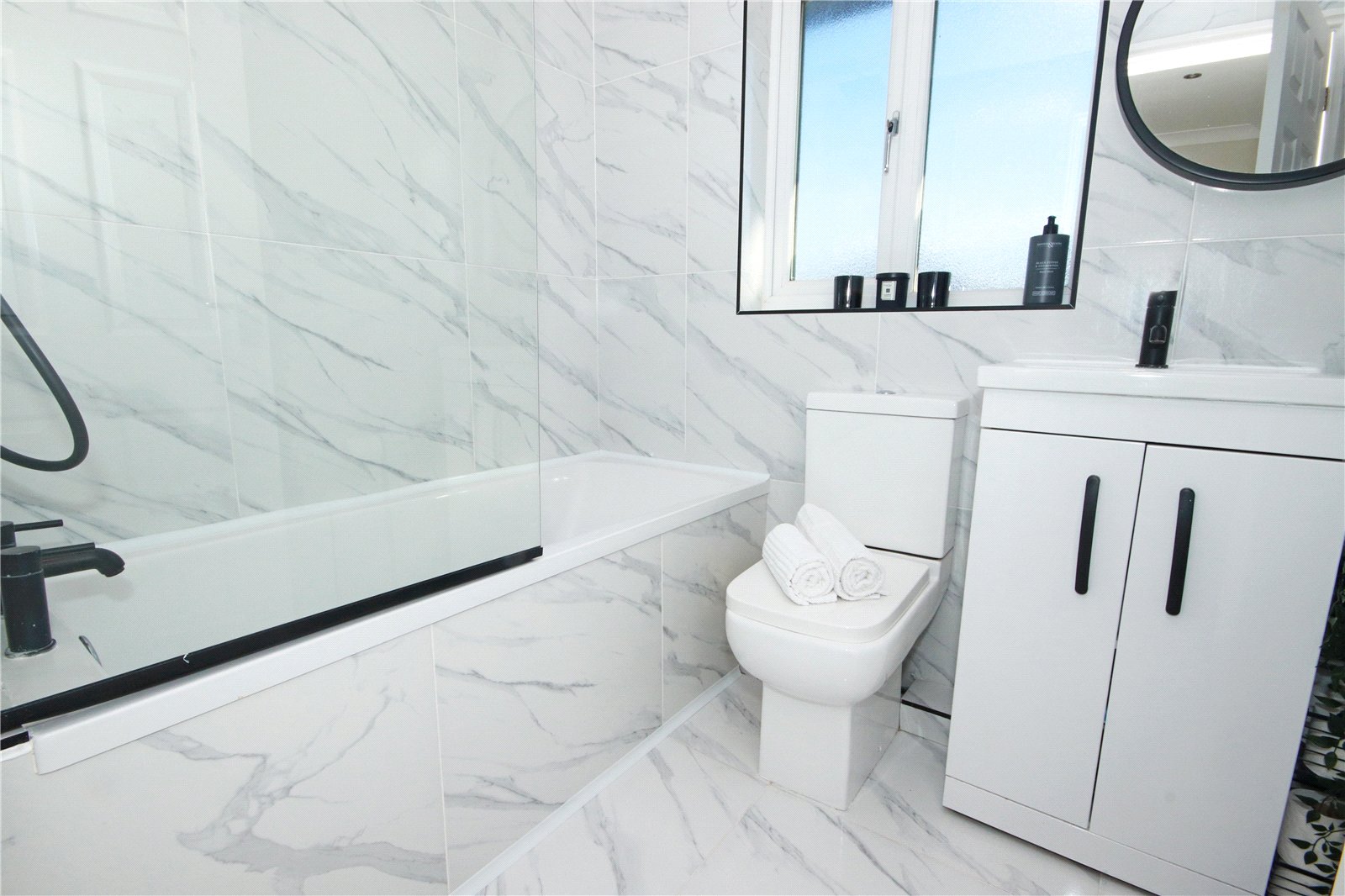 Upstairs, there are two generously sized bedrooms, both tastefully decorated and filled with natural light. The recently fitted bathroom has been finished to a high standard, featuring a sleek contemporary suite with quality fixtures and fittings.
