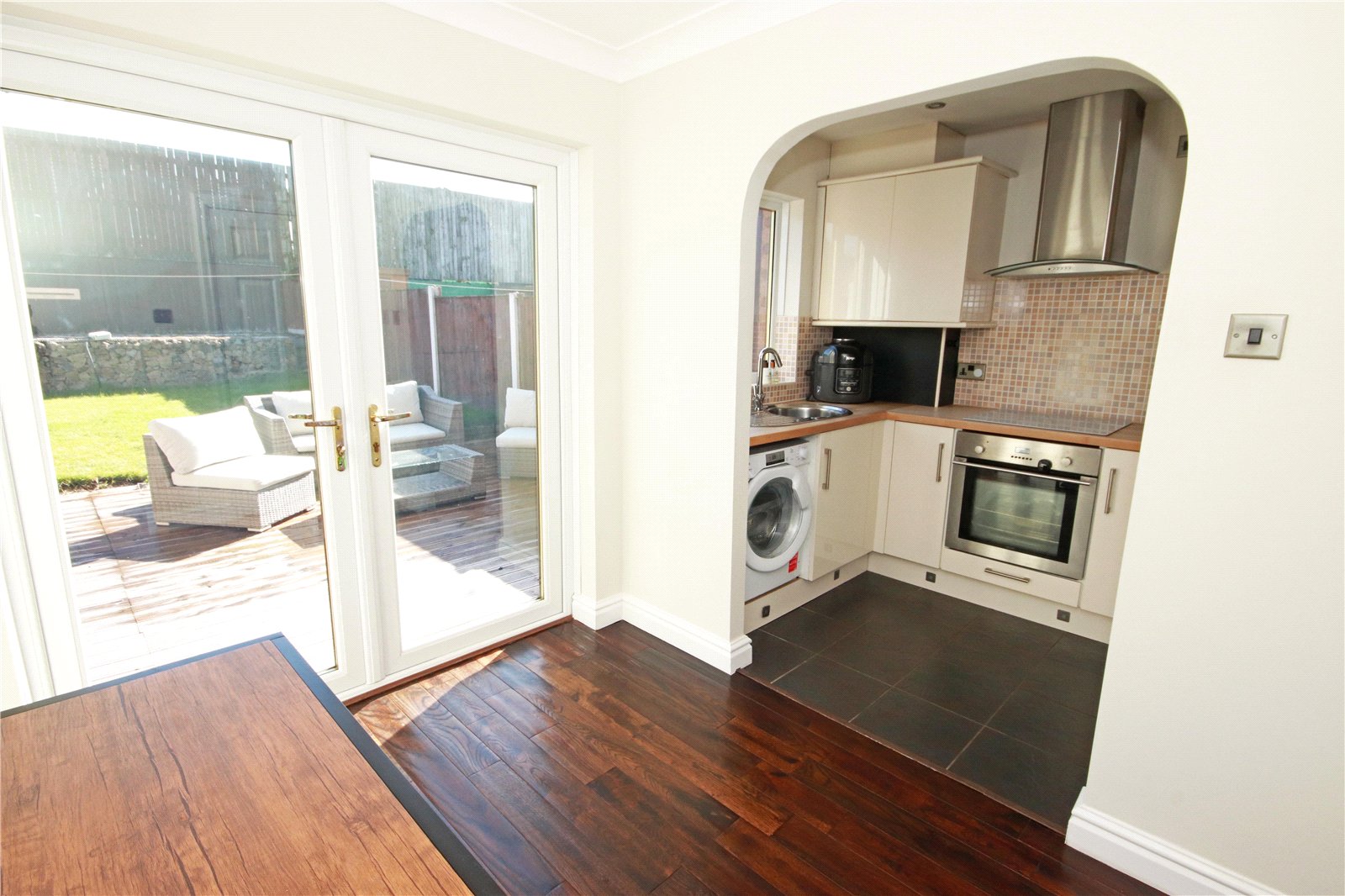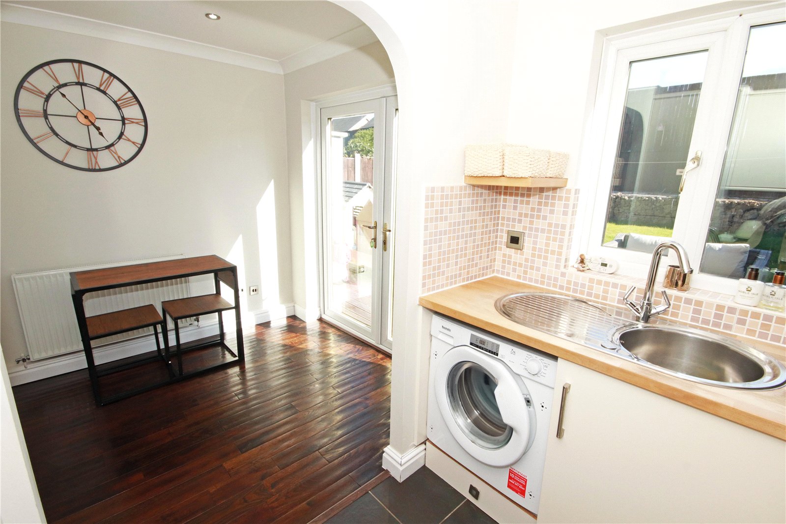 On entering, the welcoming hallway leads through to a bright and spacious living room, perfect for relaxing or entertaining. To the rear, the open-plan kitchen and dining room has been thoughtfully designed to provide a stylish yet practical space. The modern fitted kitchen offers ample storage and workspace, complemented by contemporary finishes, while the dining area benefits from direct access to the rear garden, creating a lovely indoor-outdoor flow.