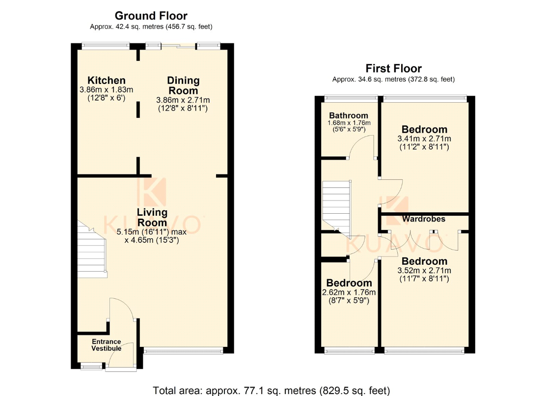 To the first floor are three well-proportioned bedrooms, all offering comfortable accommodation. The main bedroom benefits from fitted wardrobes, providing useful storage. Completing the accommodation is a modern family bathroom fitted with a stylish suite.
