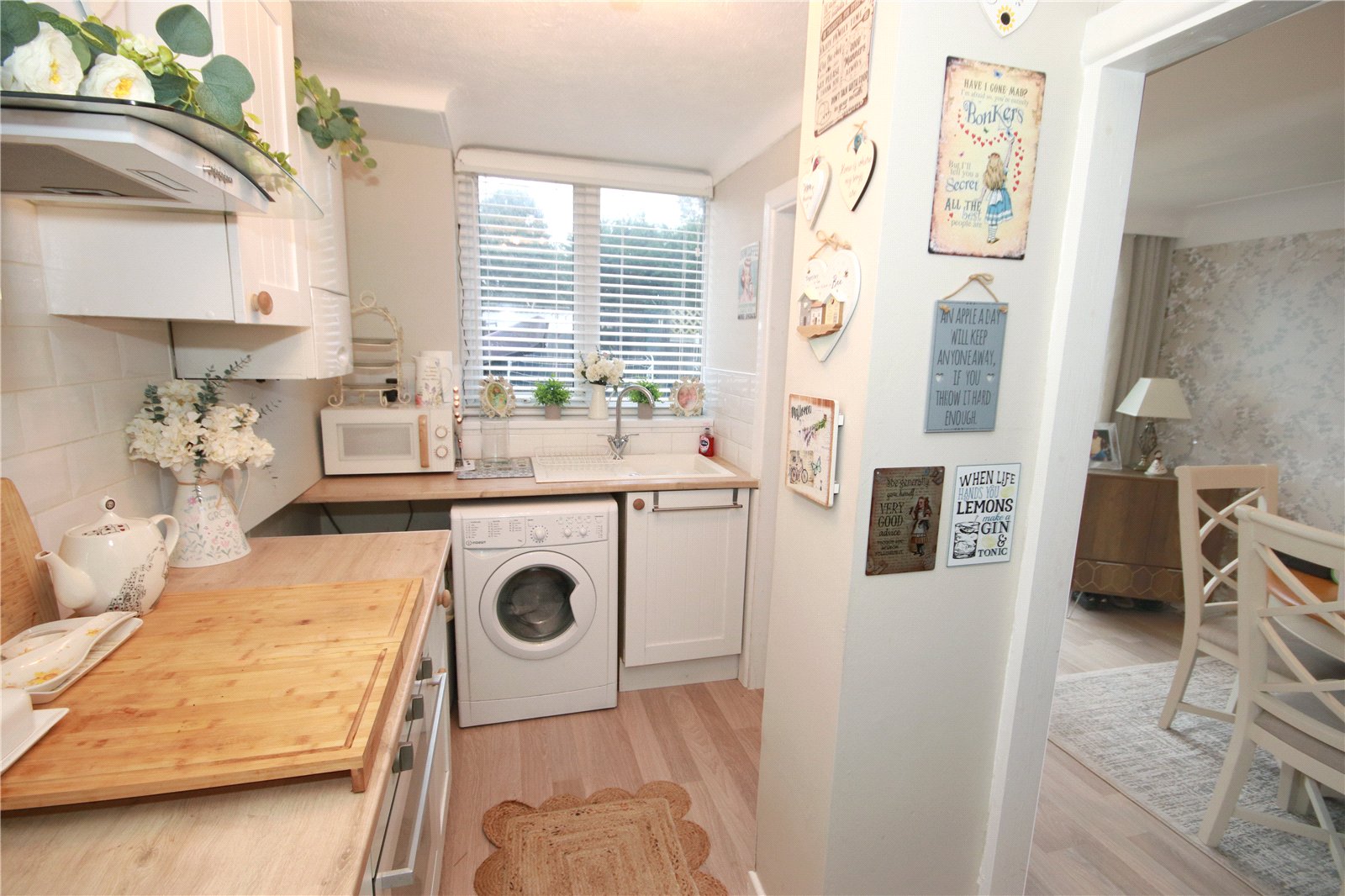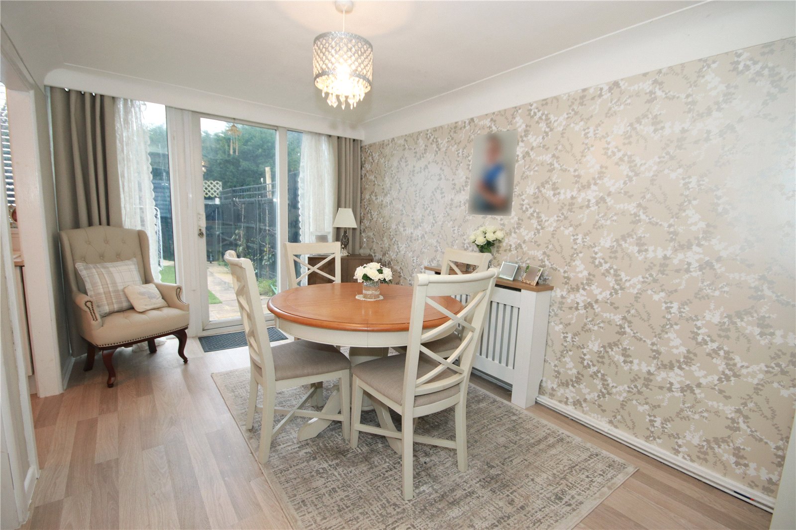 The property is entered via an entrance vestibule which leads into a bright and welcoming living room. This space flows seamlessly through to the rear dining area, creating an attractive open-plan layout that is perfect for both everyday living and entertaining. To the rear of the property is a contemporary fitted kitchen offering a range of modern units and work surfaces, with a patio door providing direct access to the garden.