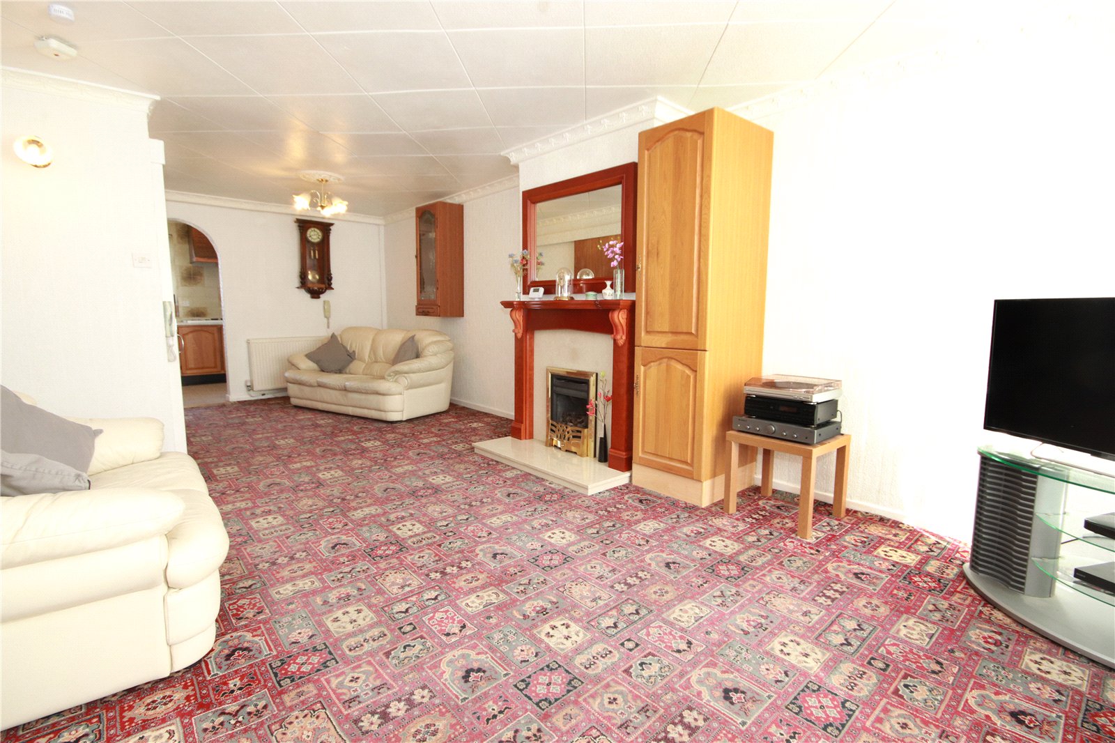 An inviting entrance porch leads into a generous lounge and dining area, offering a bright and versatile living space perfect for both relaxing and entertaining. From here, there is access to a purpose-built wet room, adding practicality and flexibility to the ground floor layout. An archway leads through to the rear fitted kitchen, which is well arranged and provides ample storage and workspace.
