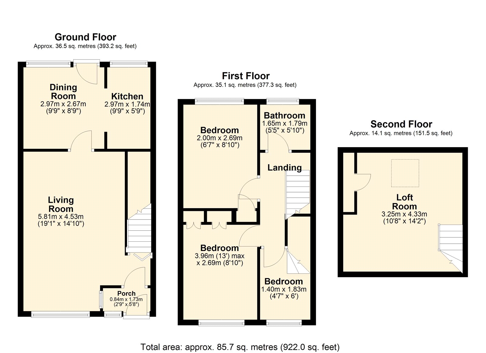 To the first floor are three well-sized bedrooms and a family bathroom. The property also benefits from a converted loft room leading from the box room, offering additional versatile space ideal for a home office, hobby room, or occasional fourth bedroom.
