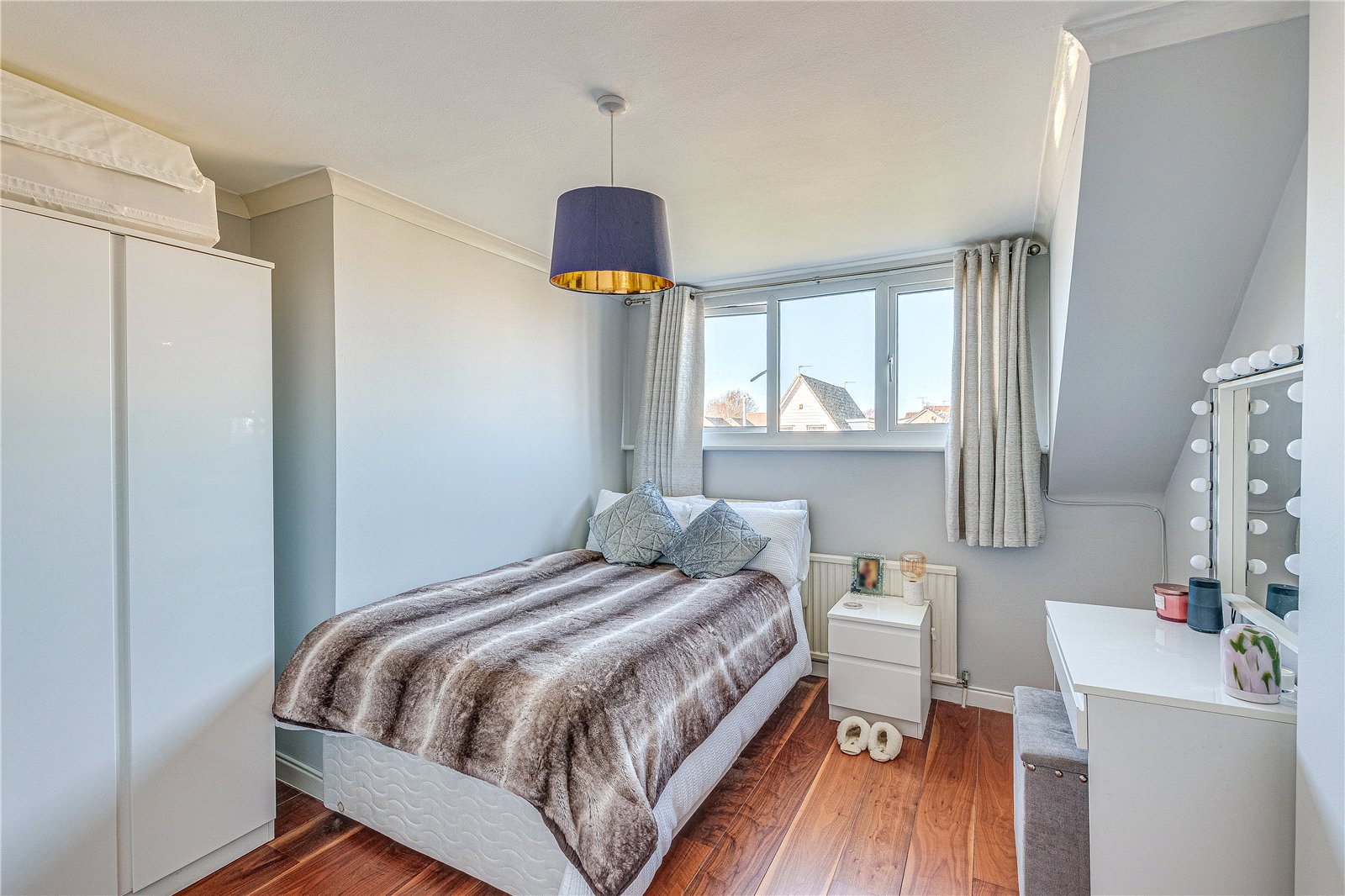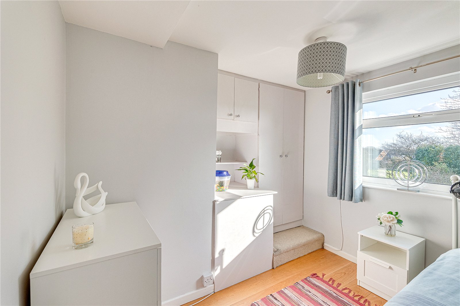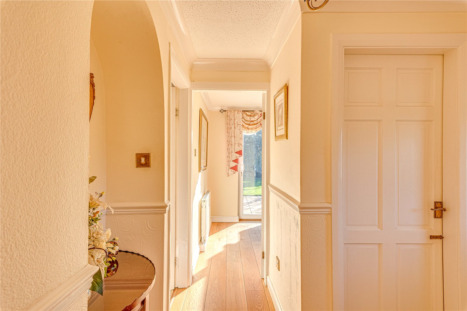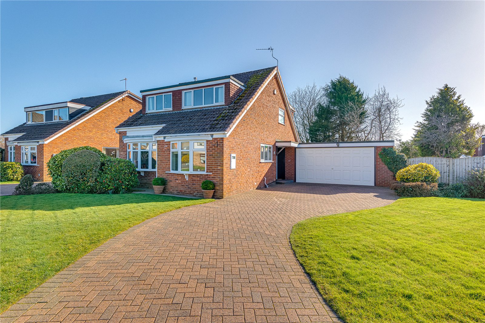 Occupying a generous corner plot, the property benefits from gardens to the front, side, and rear. The front elevation provides ample space for plants and landscaping, while a paved section offers convenient off-street parking and access to the garage. The south facing rear garden, which is not directly overlooked, can be accessed seamlessly from both the dining room via French doors and the study via sliding doors, creating a desirable indoor-outdoor living experience. The outdoor space is ideal for families, featuring both paved and lawned sections and the sun floods the garden from morning to evening.