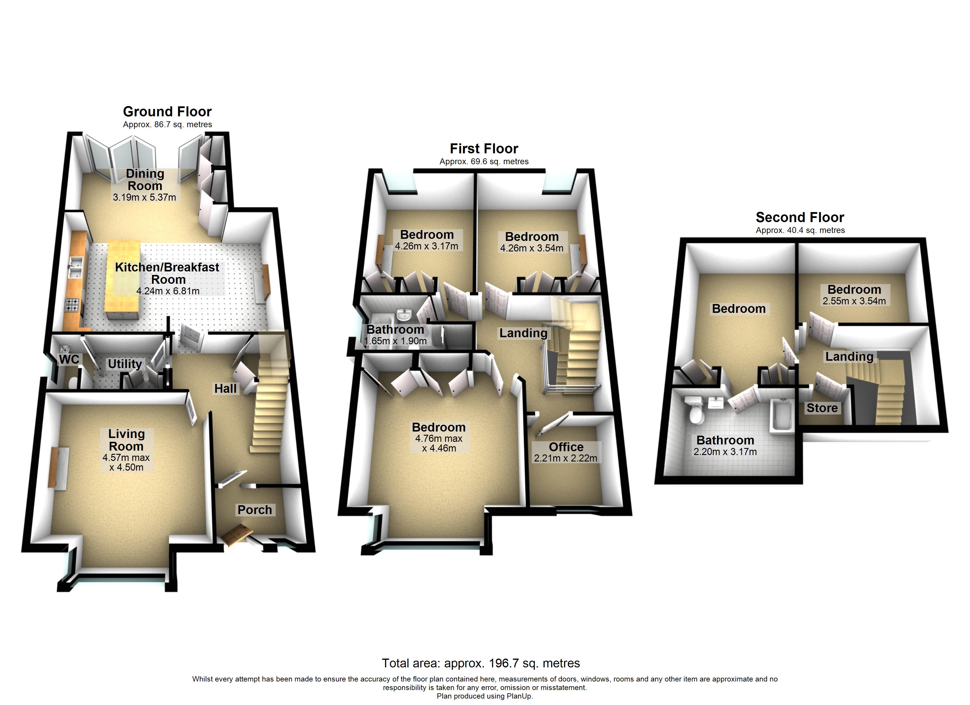 Four Bedrooms - Three Double and One En - Suite. Feature Bathroom, Clawfoot Bath and separate Shower. Victorian WC. Fitted Wardrobes to Two Bedrooms.