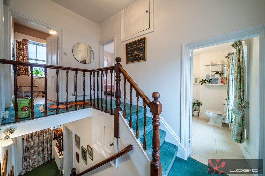 One of the two staircases leads to a double bedroom and Bathroom. The stairs step up to the landing and 4 double bedrooms, the two bedrooms at each end of the house are large and sit above the formal lounge and grand sitting room. In addition the first floor has a dressing room/study and a third bathroom.