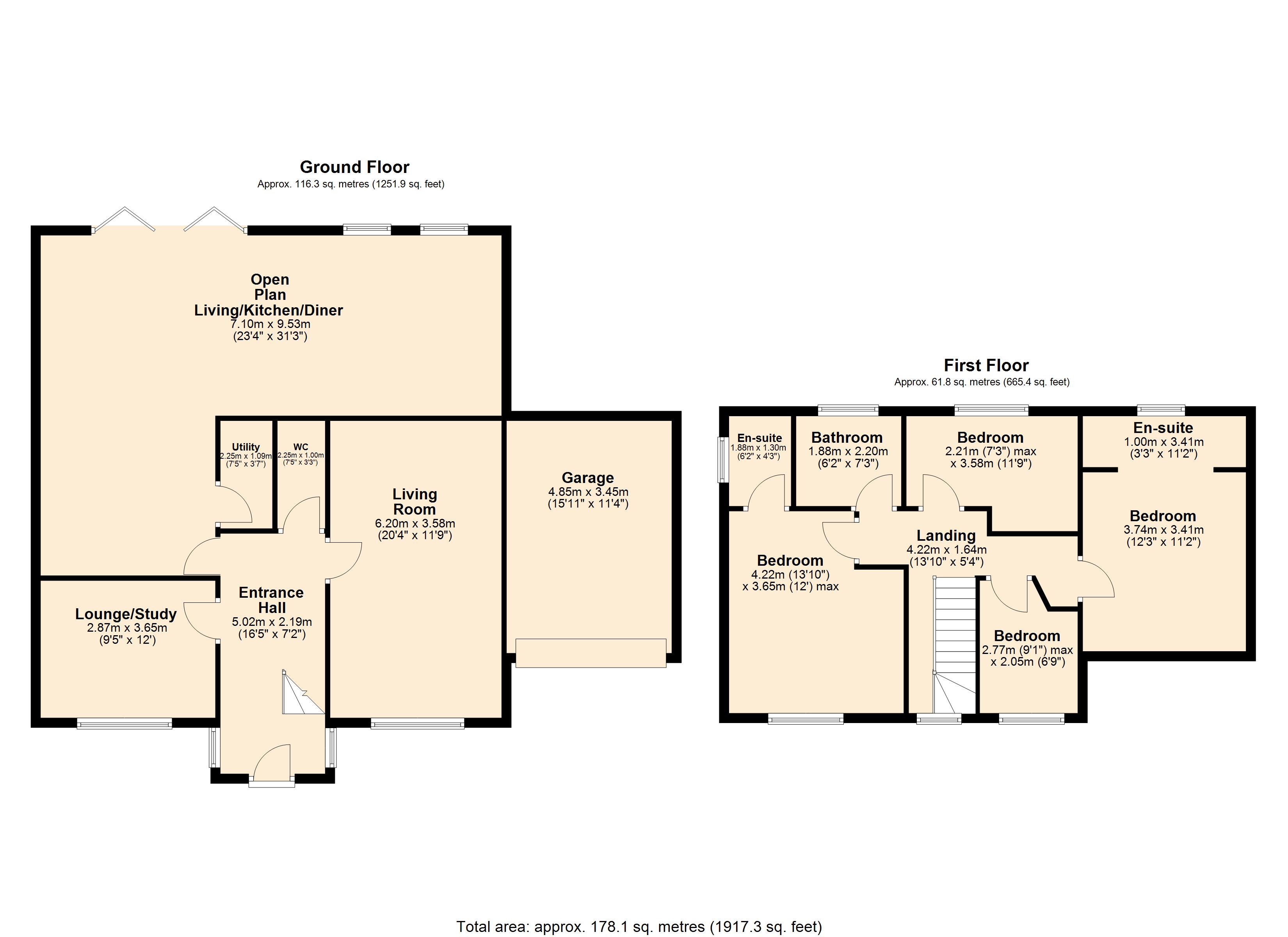To the first floor, an impressive landing gives access to five well-appointed bedrooms. Two of the bedrooms benefit from contemporary en-suite shower rooms, while the remaining rooms are served by a modern family bathroom finished to a high standard.