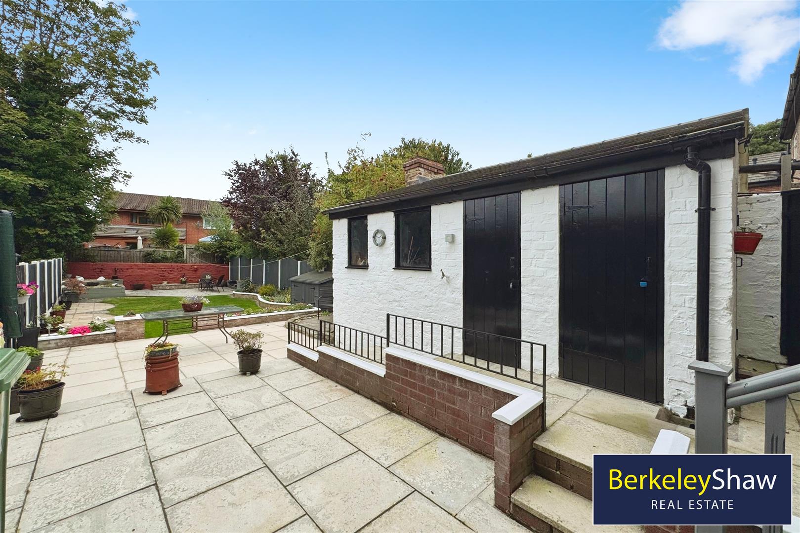 - Fantastic rear garden with generous lawn, two patio areas, and outbuildings