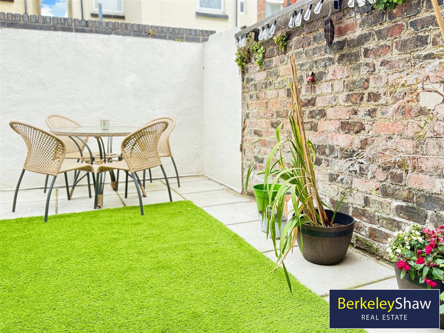 - Outside Storage Shed and Sunny Yard with Artificial Lawn & Patio Area