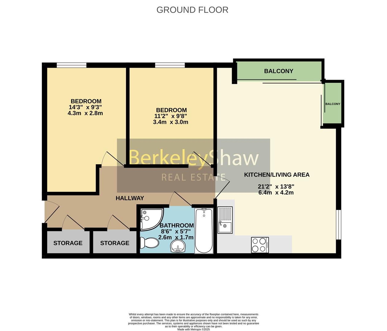 Situated on the second floor, accessed via the communal hallway with both stair and lift access, the accommodation briefly comprises; inviting entrance hall with two storage cupboards, two double bedrooms, modern four-piece bathroom and spacious kitchen/living area. The space is flooded with natural light and boasts a range of integrated appliances and two balconies. Further benefits from double glazing, secure intercom entry system and no onward chain.