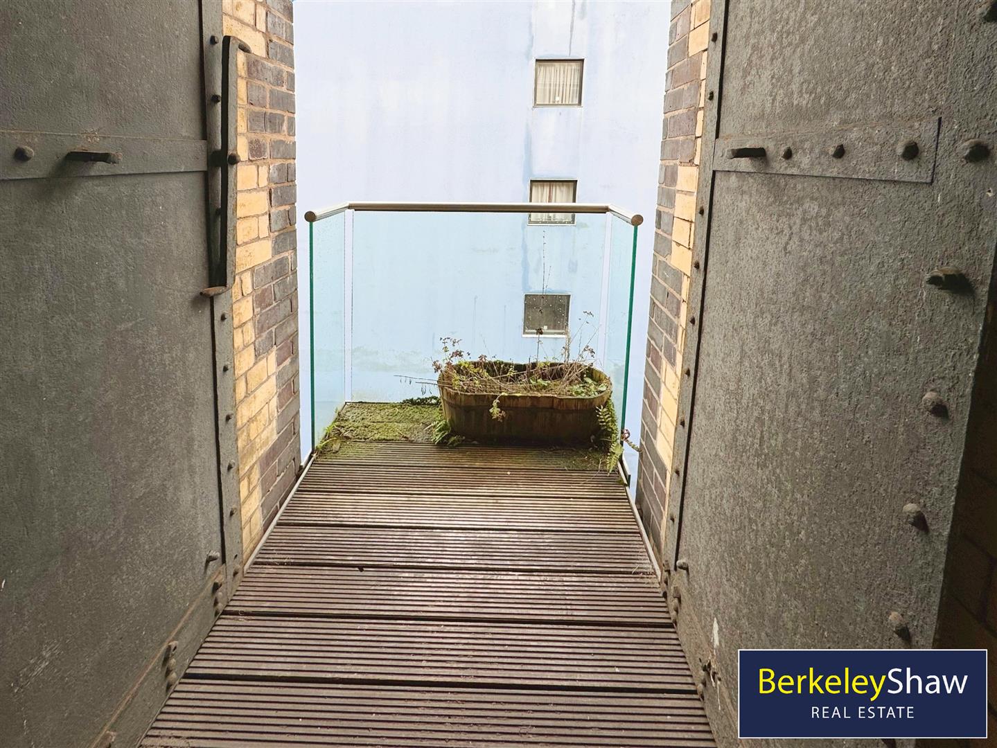 Balcony - Decked balcony with glass front.