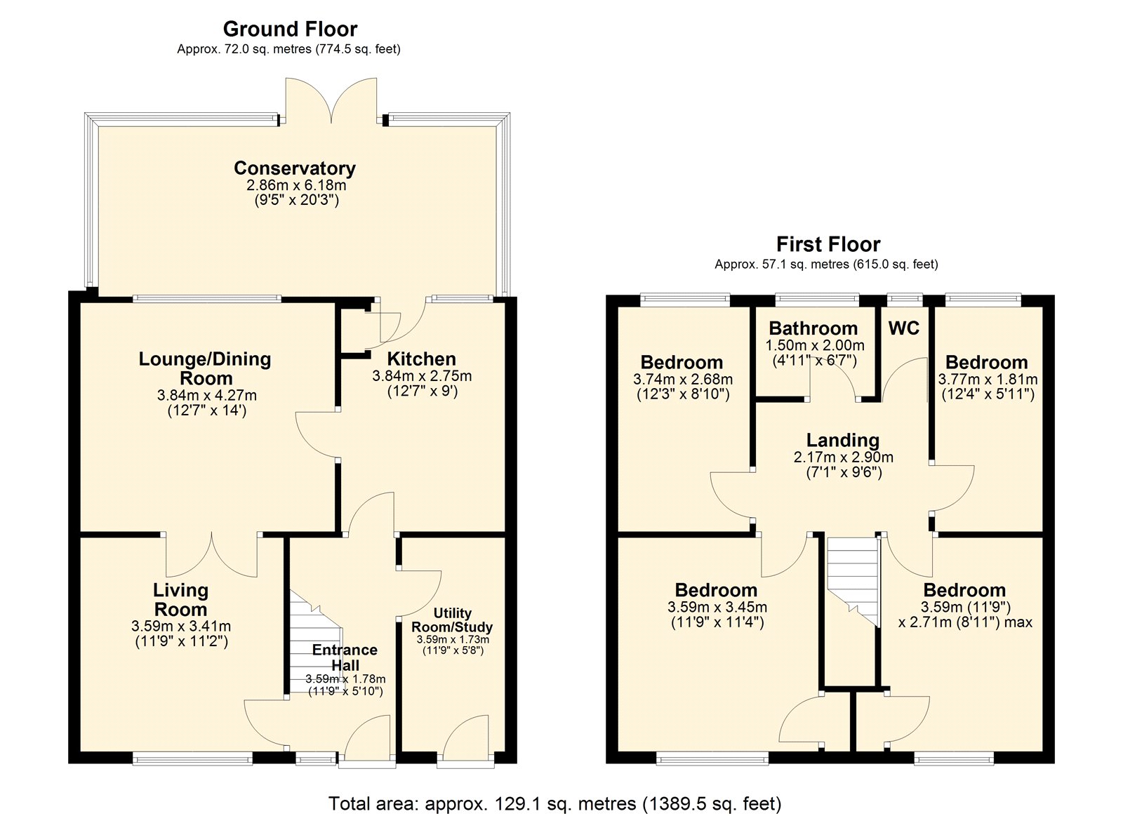 Upstairs, a spacious landing gives access to four well-sized bedrooms, including three generous doubles and a good-sized single. The accommodation is completed by a family bathroom and a separate WC for added convenience.