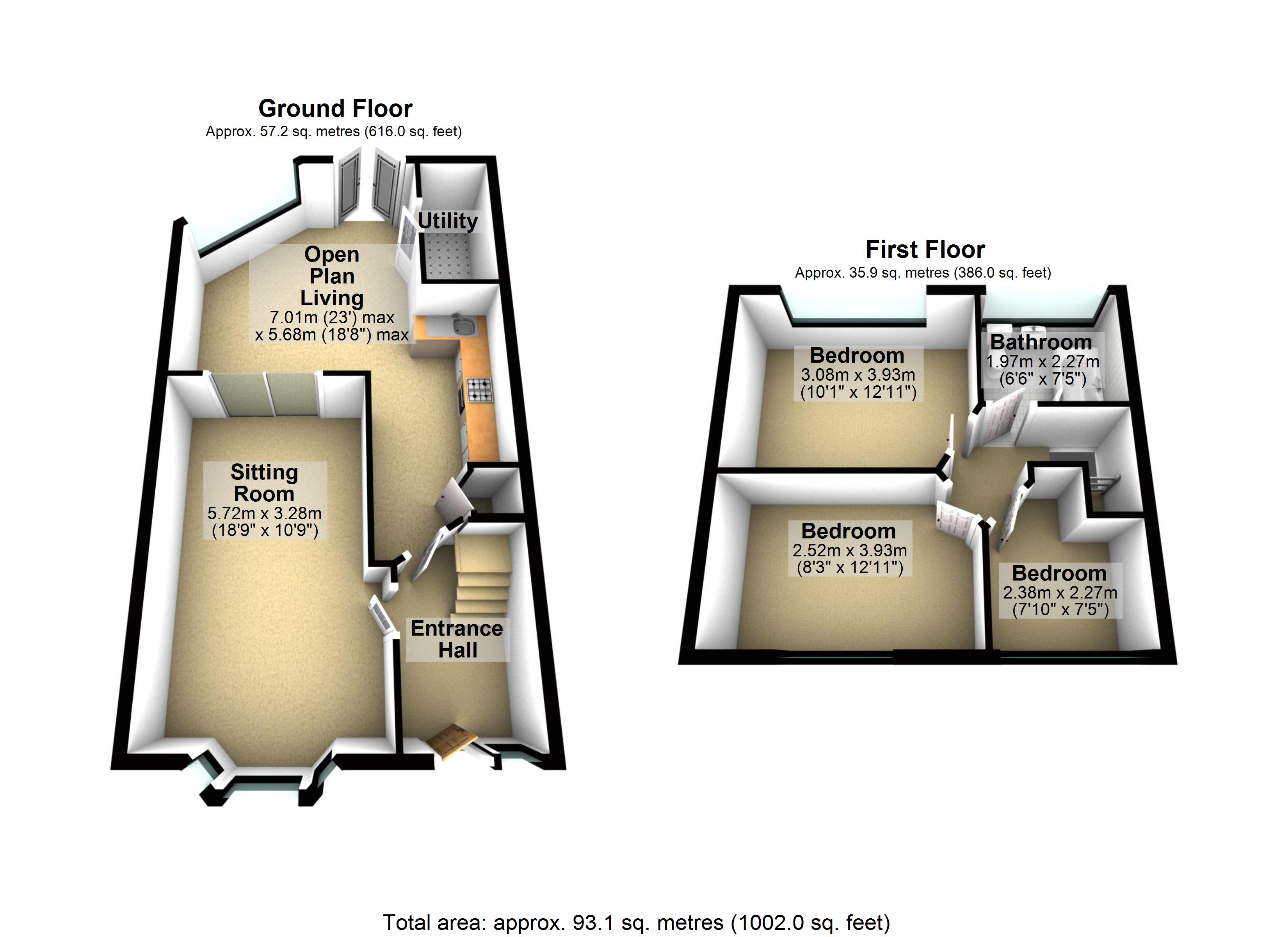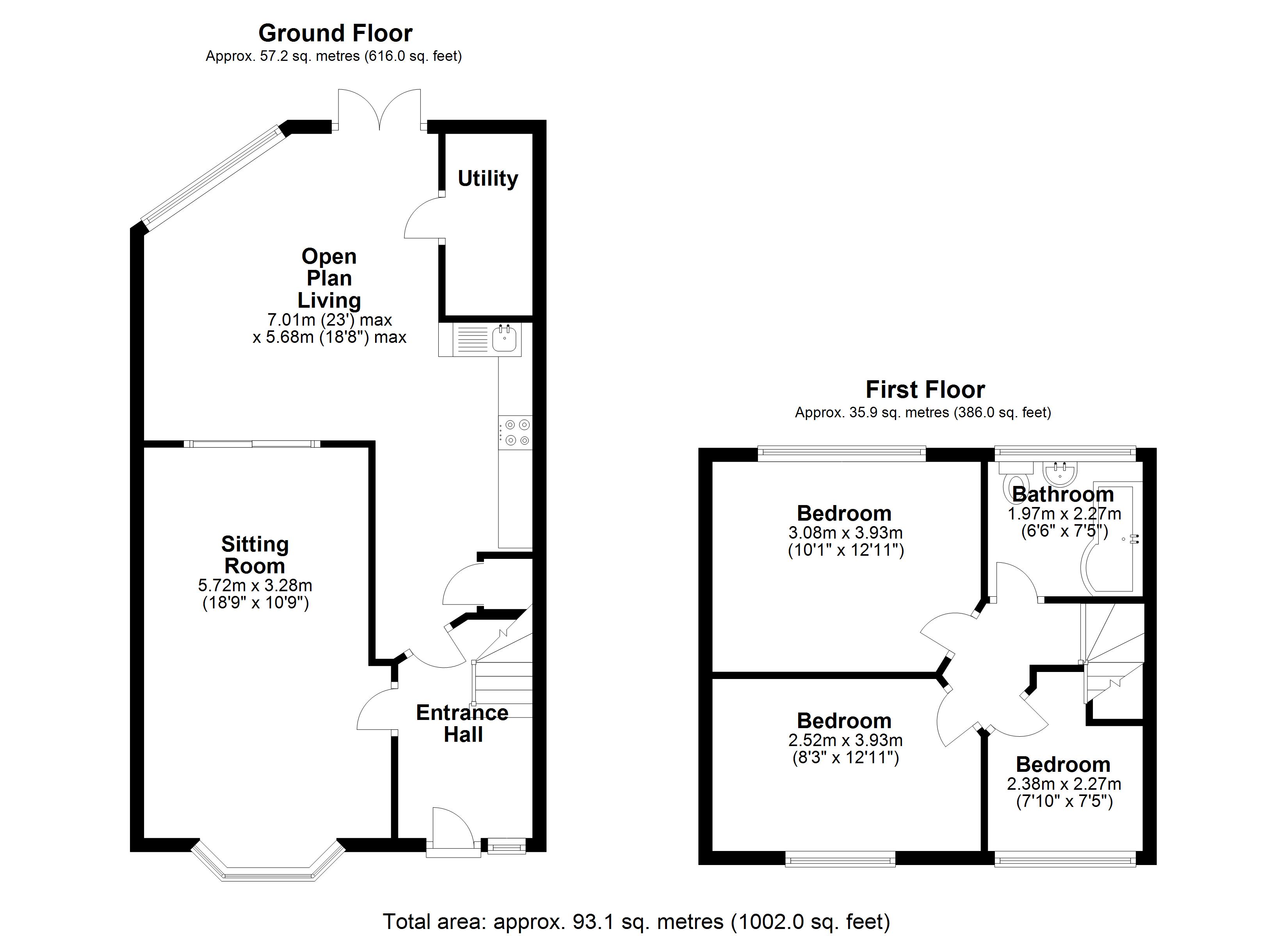 Floor Area - 979 ft2/ 91 m2