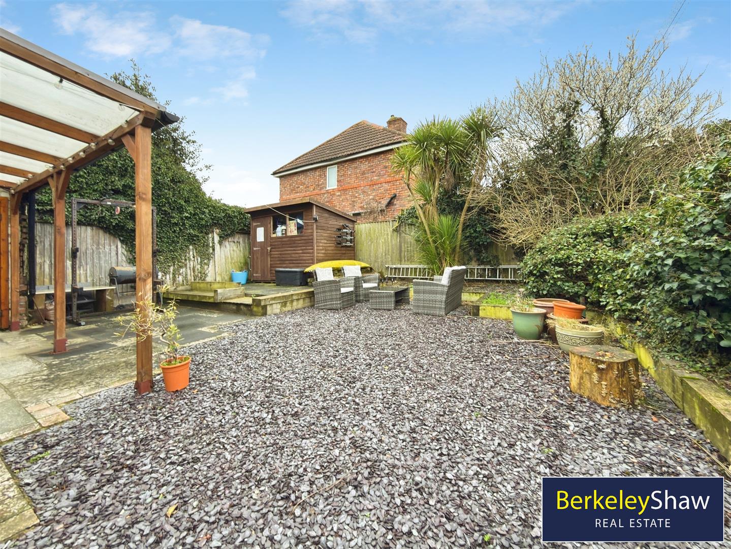 The property benefits from DRIVEWAY PARKING for up to three vehicles, EV Charger point and a low-maintenance rear GARDEN designed for both practicality and relaxation, featuring a pergola that provides a covered outdoor space ideal for year-round use, along with a useful storage shed.
