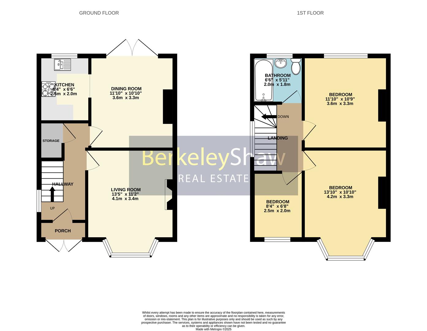 Upstairs, a bright landing leads to two double bedrooms, along with a third single bedroom that is currently used as an office. A three-piece family bathroom completes the first-floor accommodation.