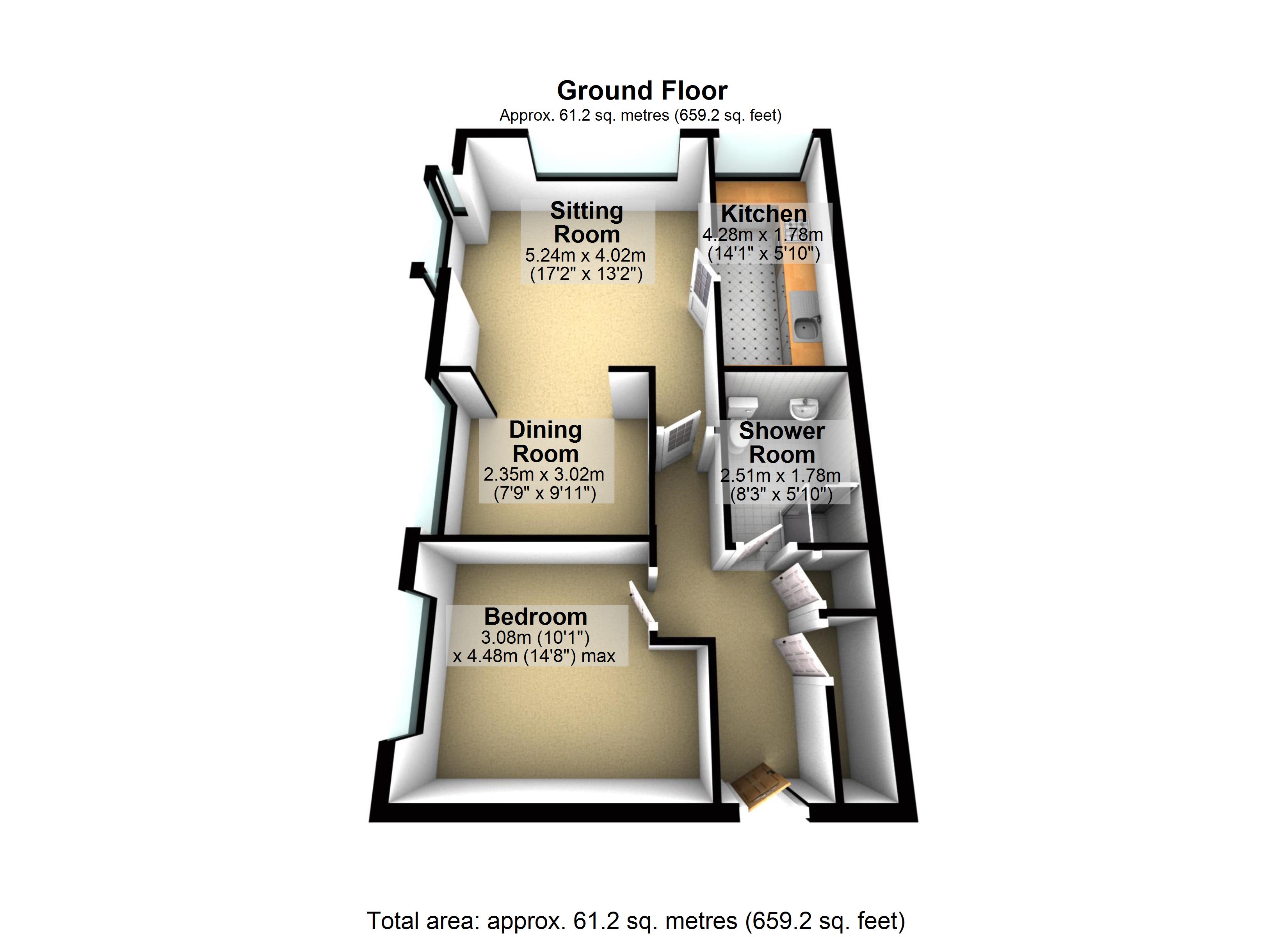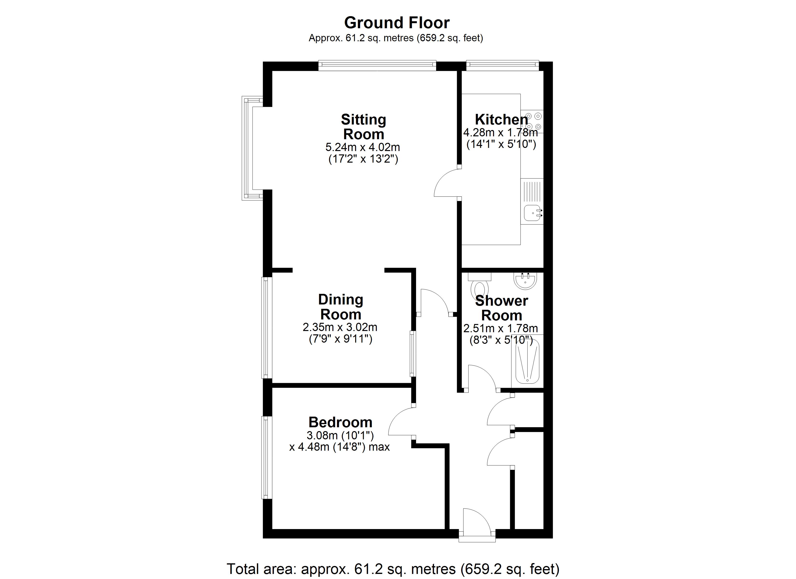 Floor Area - 613 ft2/ 57 m2