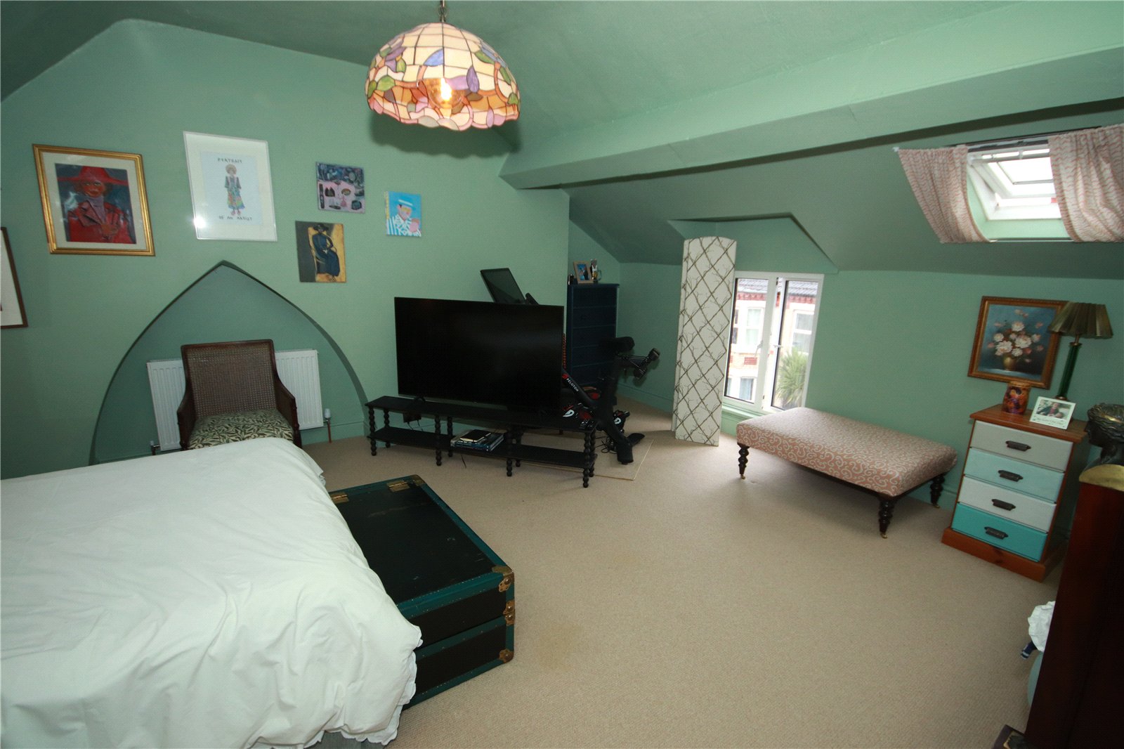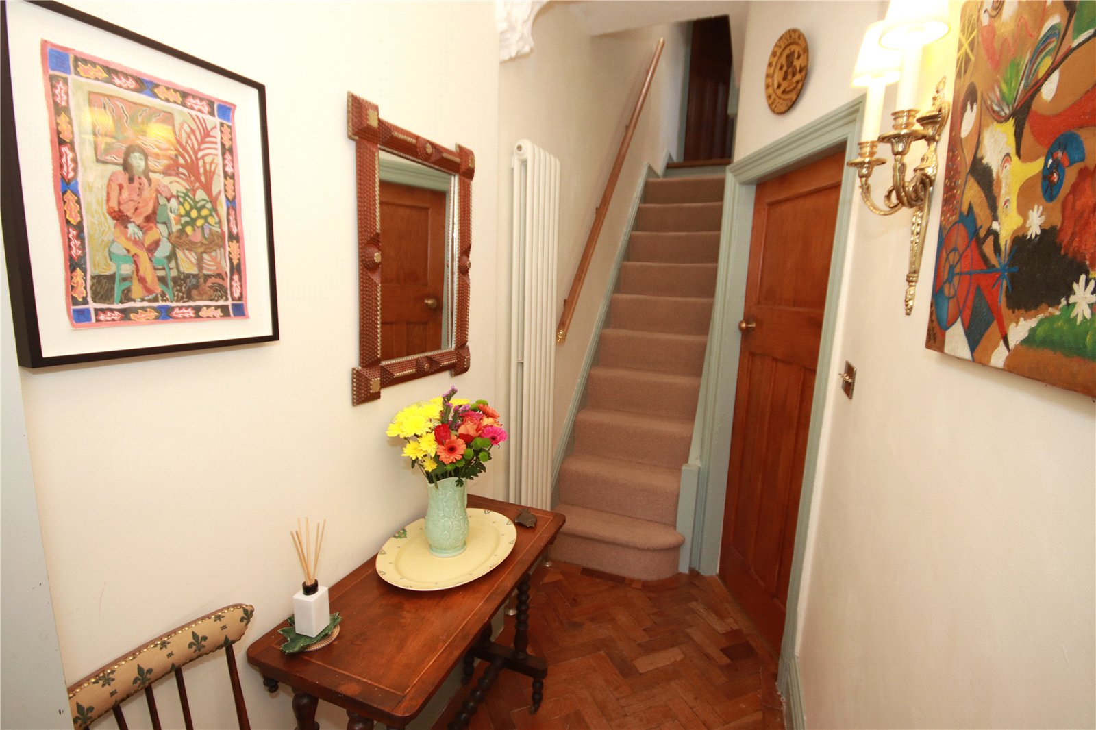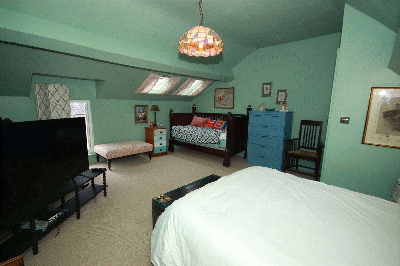 The first floor hosts three good-sized bedrooms, each offering comfortable accommodation, along with a family bathroom fitted with a suite suitable for modern living. Rising to the second floor, a landing leads to a spacious fourth bedroom, which could serve as a principal bedroom, guest room or home office, benefiting from a quiet and private position within the house.
