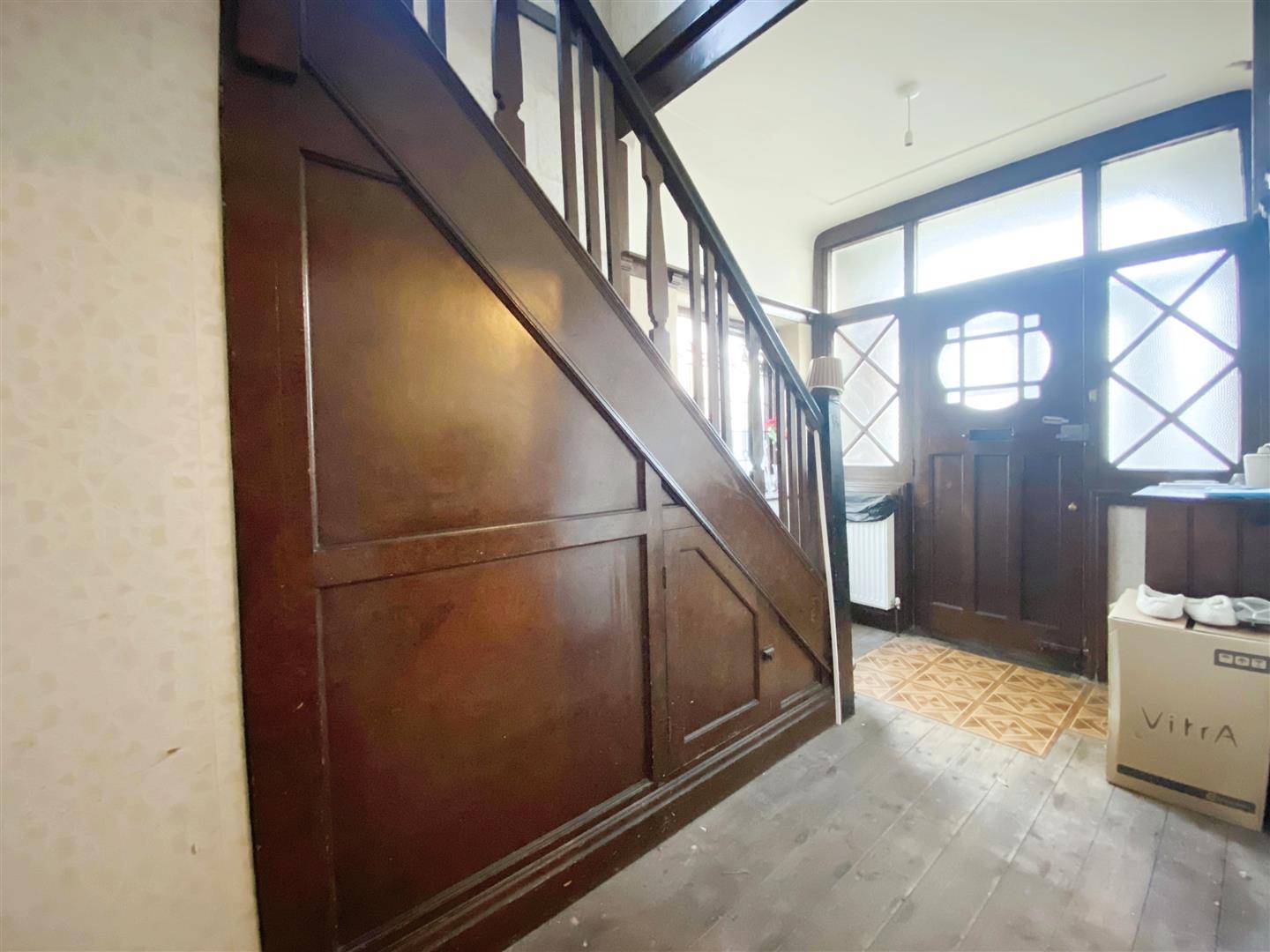 Entrance Hall - Stairs to upper floor, radiator, single glazed window & wood panelling.