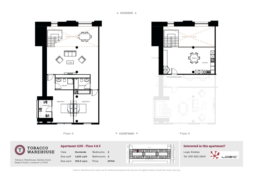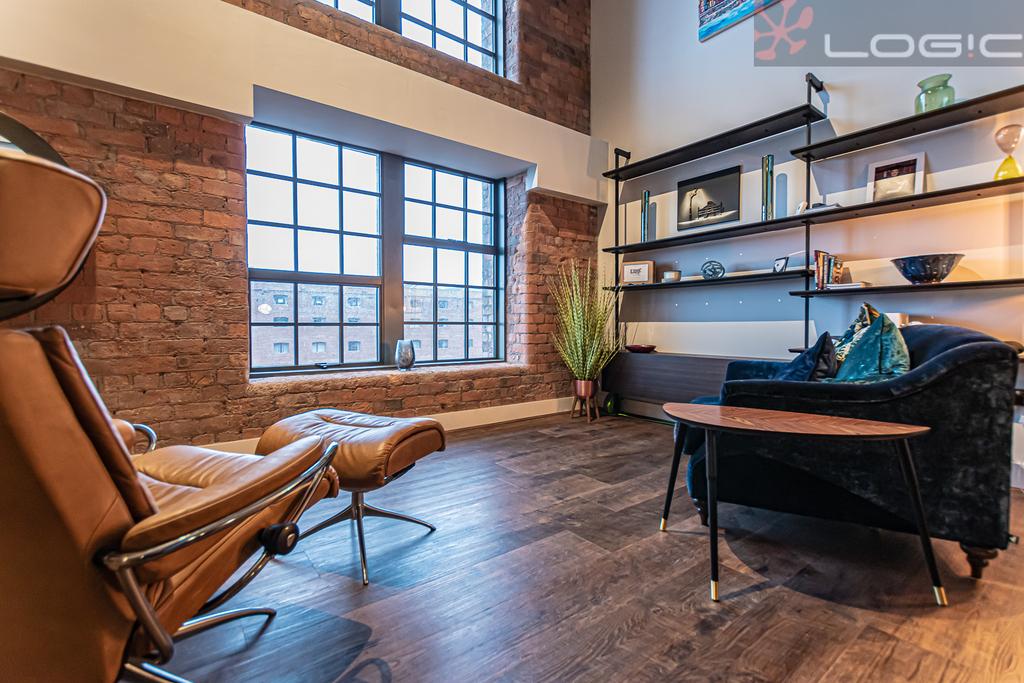 Located on Floor Levels 4 & 5, the apartment benefits from plenty of natural light with large double-height windows.