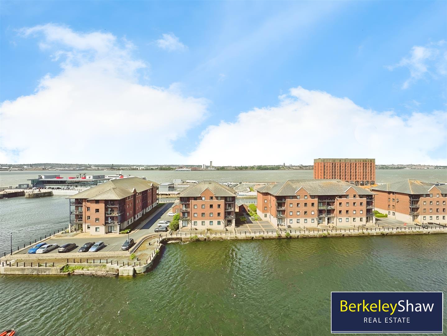 From the moment you enter, the space impresses with its exposed brick walls, vaulted ceilings, and industrial-style beams. The heart of the home is the stunning open-plan living, dining and kitchen area - flooded with natural light and boasting panoramic views across the dock and out to the River Mersey. The modern kitchen features quartz worktops, integrated appliances and a centre island with breakfast bar, making it an ideal space to relax or entertain.