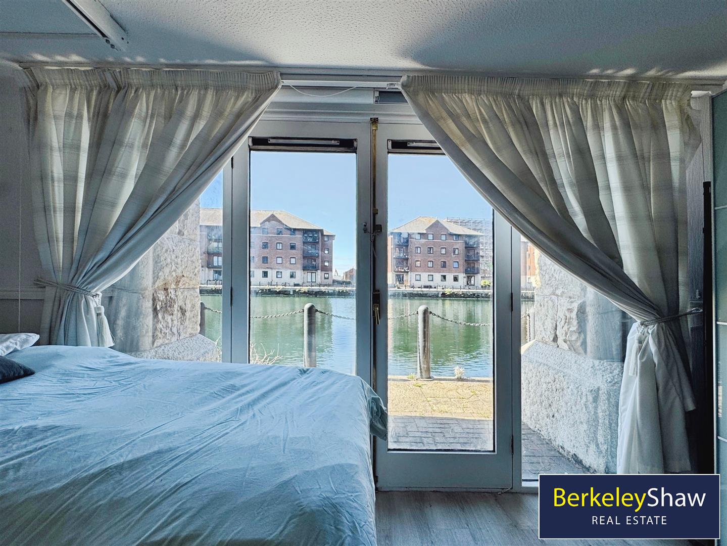 - Bright and stylish open-plan living/dining room with Juliet balcony and dockside views