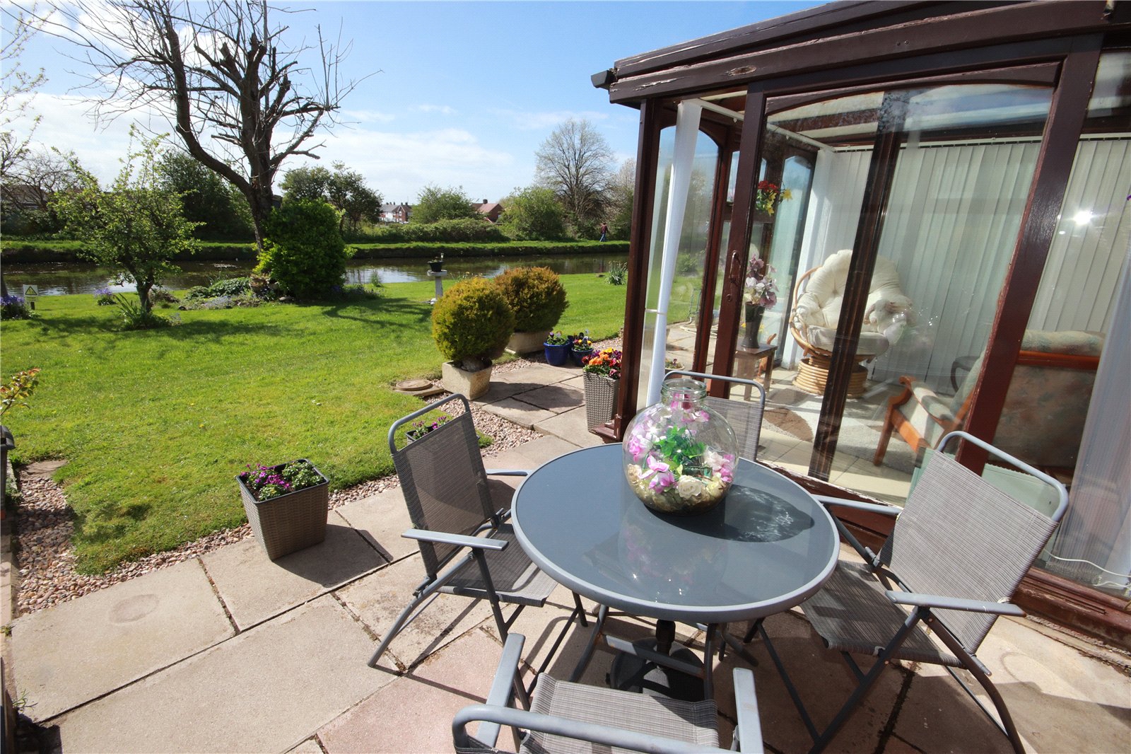 The accommodation briefly comprises of a bright and spacious lounge, a fitted kitchen, a spacious bathroom, two well-proportioned bedrooms, both equipped with fully fitted wardrobes, and a conservatory which overlooks the garden and canal views. Further storage includes an airing cupboard, outdoor storage cupboard and generous loft space. The property is thoughtfully laid out and benefits from ample natural light throughout, creating a warm and welcoming feel.
