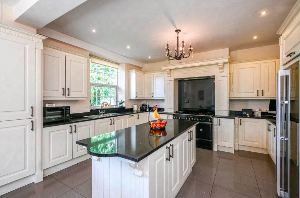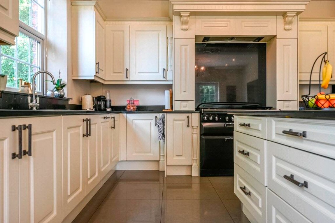 The luxurious, hand-crafted kitchen with quartz worktops and integrated appliances connects you to the immaculate gardens that surround via the French Doors to the rear.