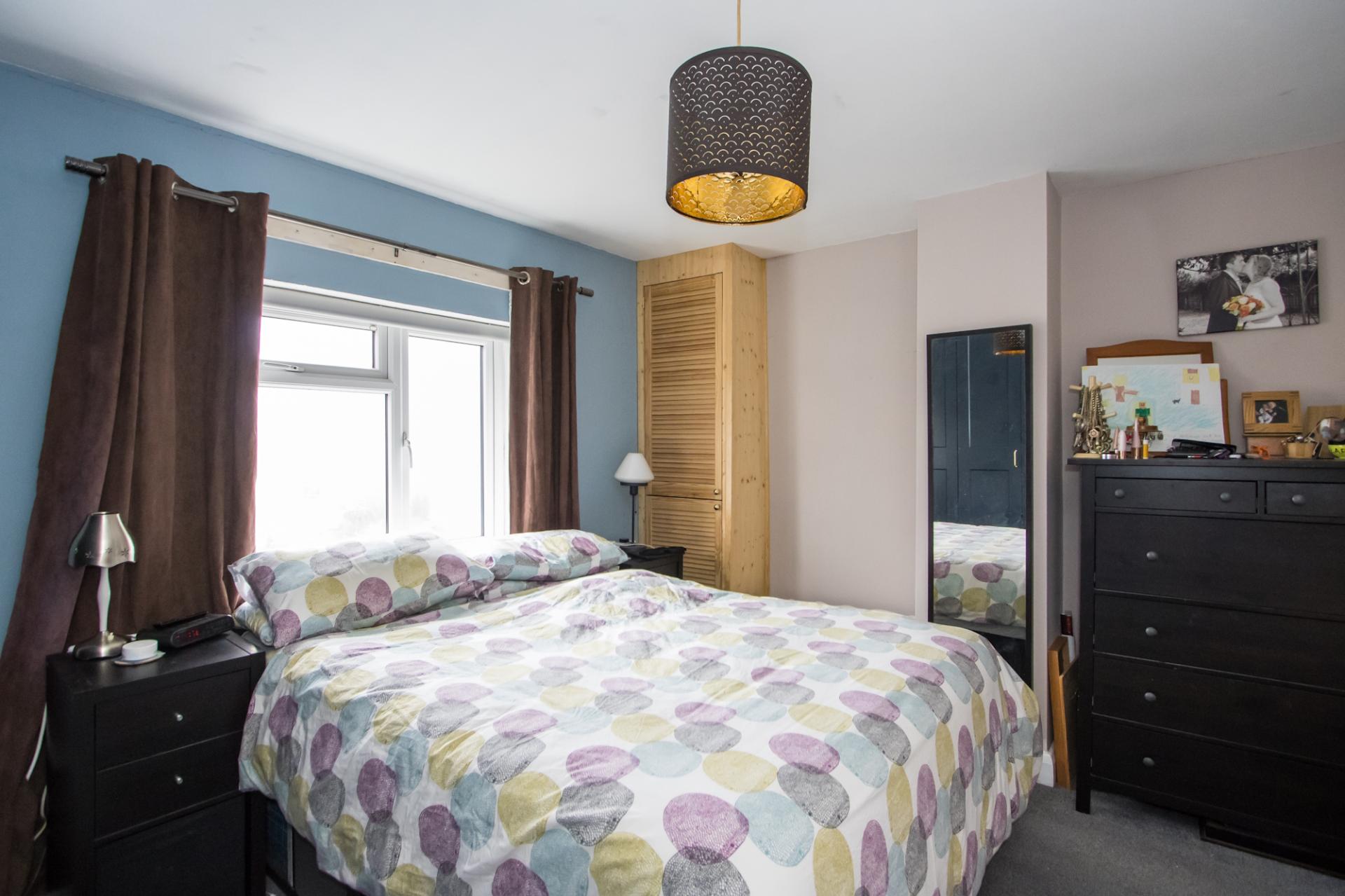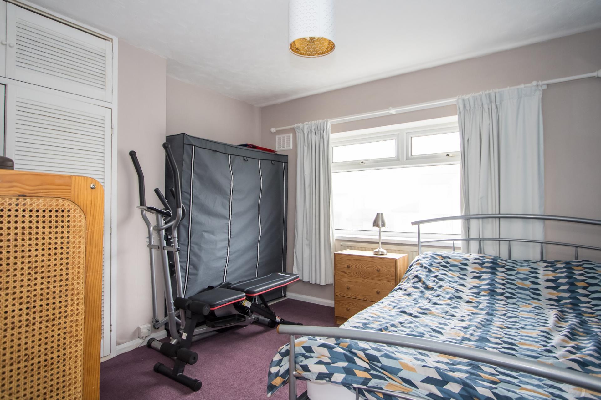 The second first floor double bedroom, once again with uPVC double glazed window to the front. Fitted carpet, built-in wardrobe, central heating radiator and power points.