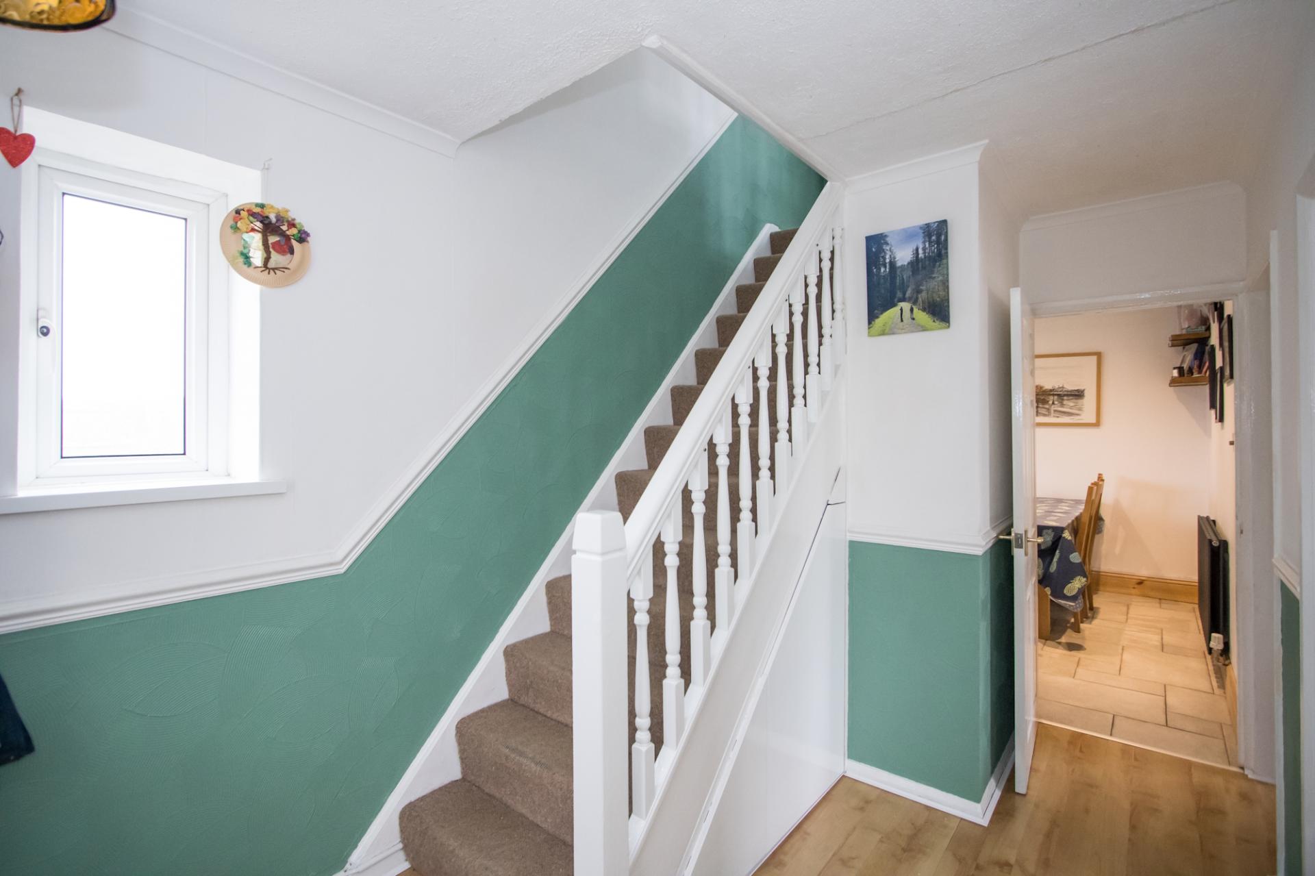 Fitted carpet to the stairs and landing. Central heating radiator and power points. uPVC double glazed window to the rear. Doors to two bedrooms and the bathroom along with the staircase to the top floor.