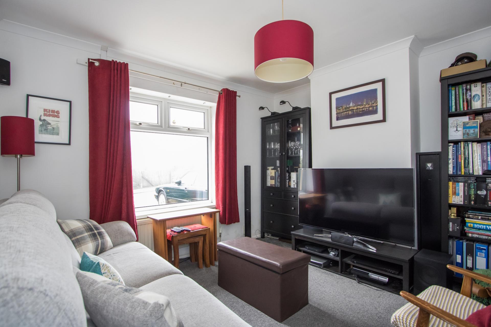 This is a well-proportioned sitting room with uPVC double glazed bay window to the front. Engineered wood flooring. Feature chimney breast with wood burning stove. Central heating radiator, power points and TV point. Coved ceiling.