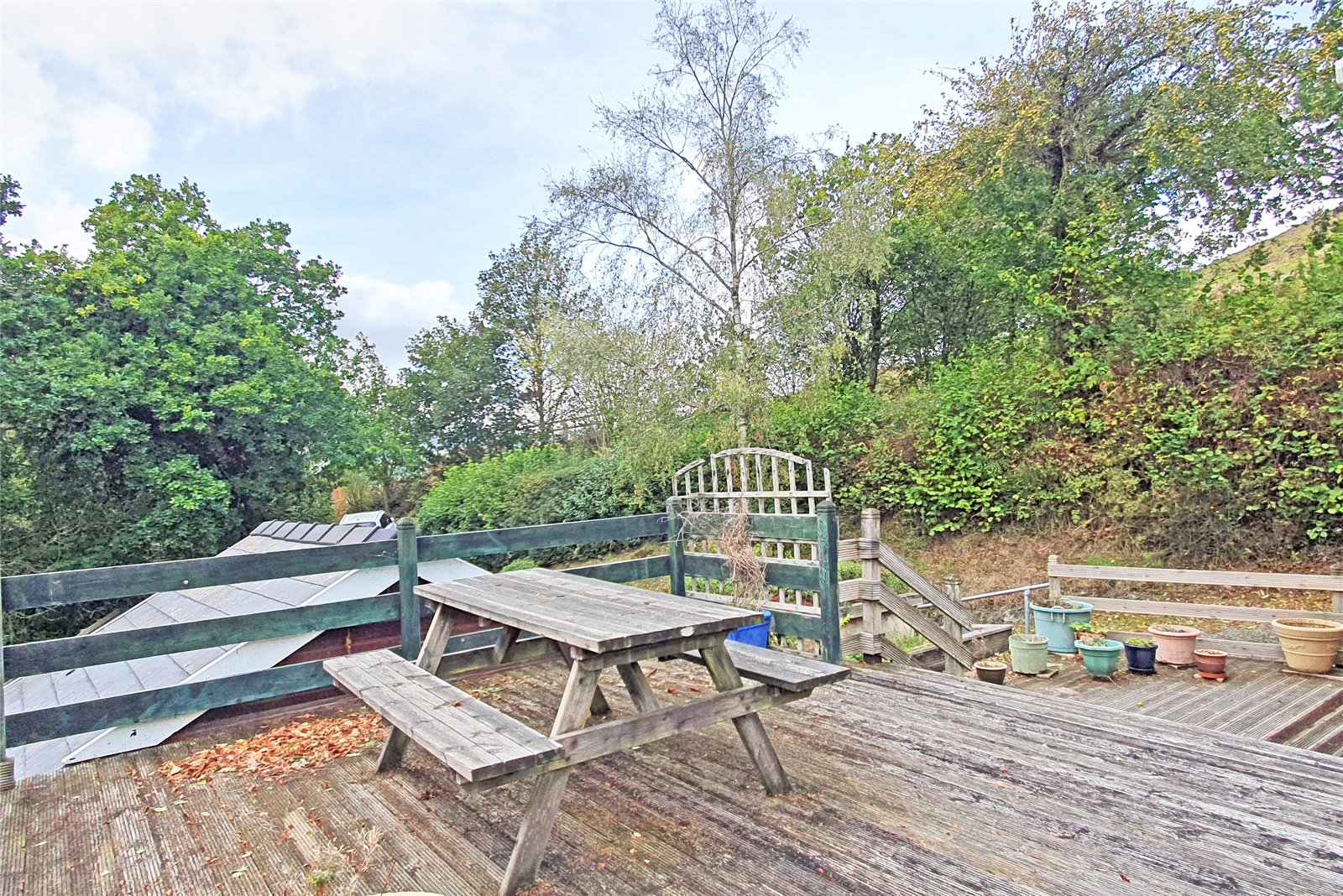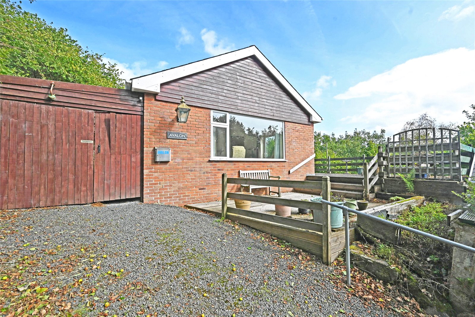 An individually designed, split-level detached property built from cavity brick and block walls, under slate and flat roofs. It has PVC double-glazing, LPG Propane gas central heating and briefly provides: - Ground Floor: Entrance Hall, Shower Room, Kitchen / Diner, Study / Bedroom, Bathroom, Lounge and integral Car Port; Lower Ground Floor - Hall, two double Bedrooms, a singe Bedroom and Cloakroom. Outside - There is a parking area for several cars, a 27’ Garage / Workshop, very large decked patio, a sloping, private rear garden, Garden Shed, Aluminium Greenhouse and about an acre of steeply sloping natural woodland. Extending in total to 1.2 acres, or thereabouts. EPC - F ( 28 )
