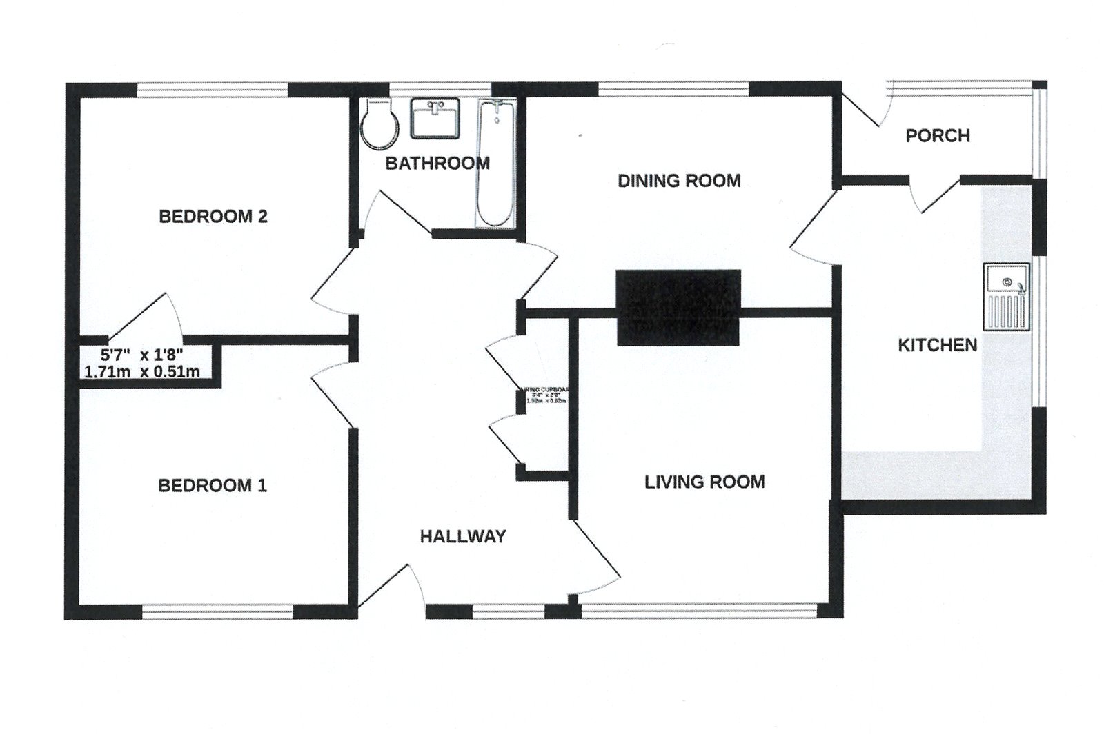 A well proportioned detached bungalow built in the 1970s from cavity walls the rendered and coloured elevations, under concrete tiled and flat felt roofs. It has Propane gas central heating, PVC double-glazing and it briefly provides: - Entrance Lobby, two double Bedrooms, Shower Room, 20’ Lounge / Diner, Kitchen and Rear Porch / Laundry, together with parking for 3 cars, a 18’ Workshop, Greenhouse, Garden Shed, front flower, side lawn, and an enclosed, South-facing rear garden with a patio, flower borders, pond and shrubs. Council Tax - Band D EPC - Band E (44)