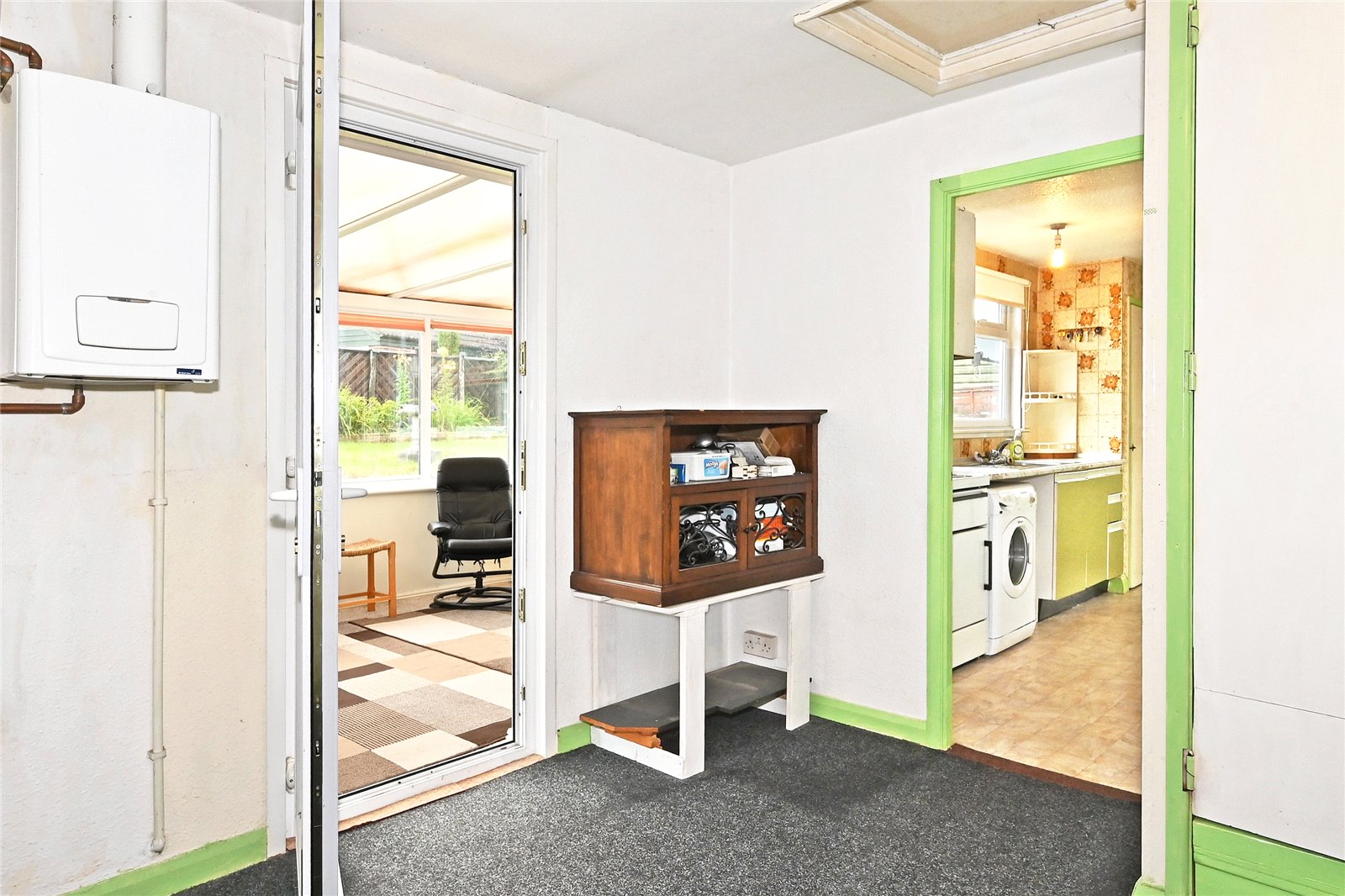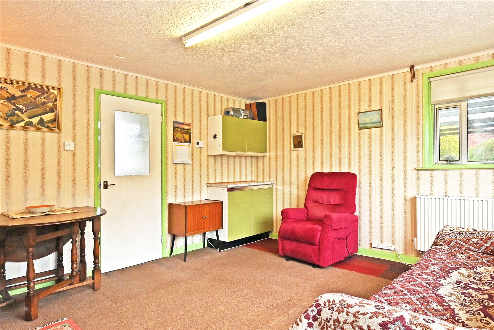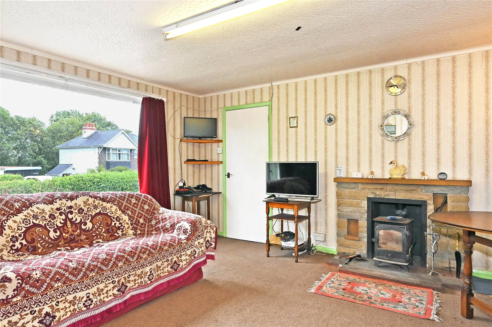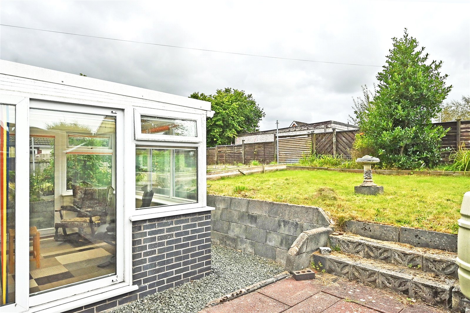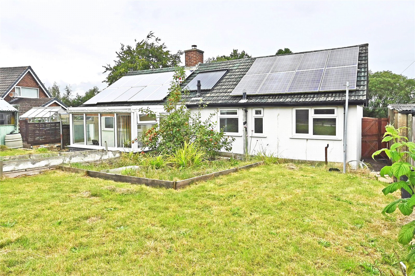 An attractive detached bungalow built around 1970 by Woolaway from prefabricated concrete panels with mainly rendered and whitewashed elevations, under a concrete tiled roof. It has been enhanced with a conservatory, Solar PV, Solar hot water, PVC double-glazing and briefly provides: - Entrance Hall, Lounge, Kitchen, Inner Hall, Conservatory, two double Bedrooms, one single Bedroom, Bathroom and separate Toilet; In addition there is a detached Garage, lean-to Car Port, large tarmac parking area and a private South-facing rear garden with a lawn, flower borders, mature evergreen and flowering shrubs, patio, three storage sheds and screen fencing. Council Tax - Band D EPC - E ( 50 )