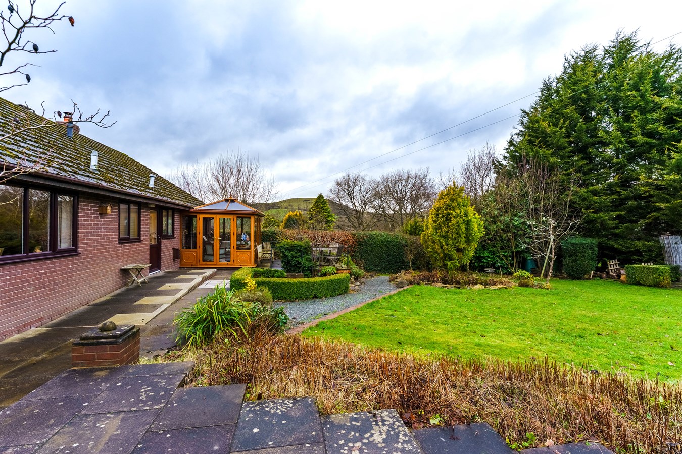 - Exceptional landscaped gardens with terraces, pond, mature planting, workshop/home office space and far-reaching views across the Mid-Wales countryside