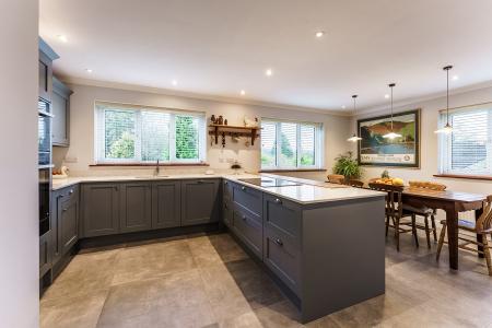 - Spacious kitchen/breakfast room forming the heart of the home, featuring a bespoke drinks cabinet, breakfast bar and modern utility room